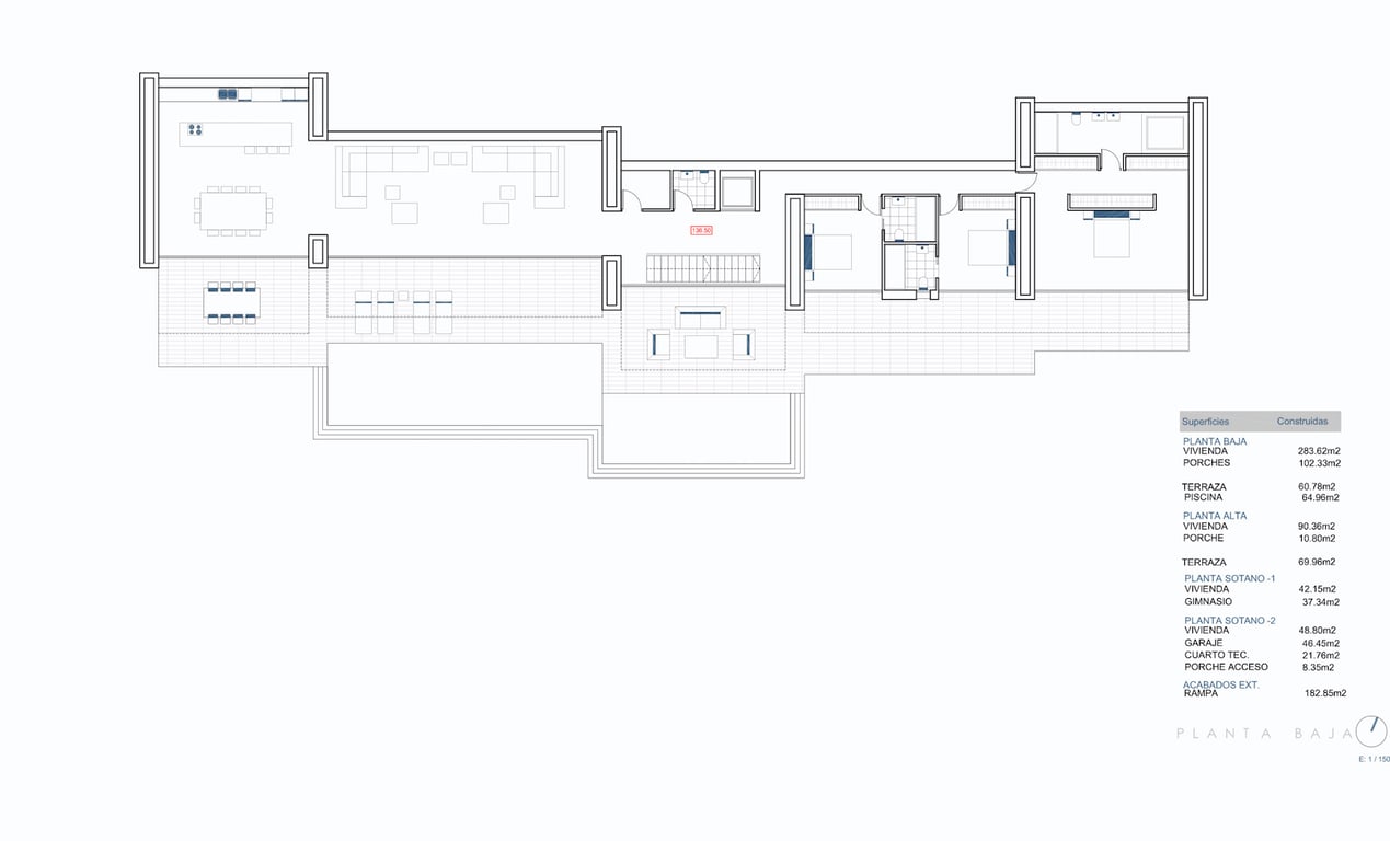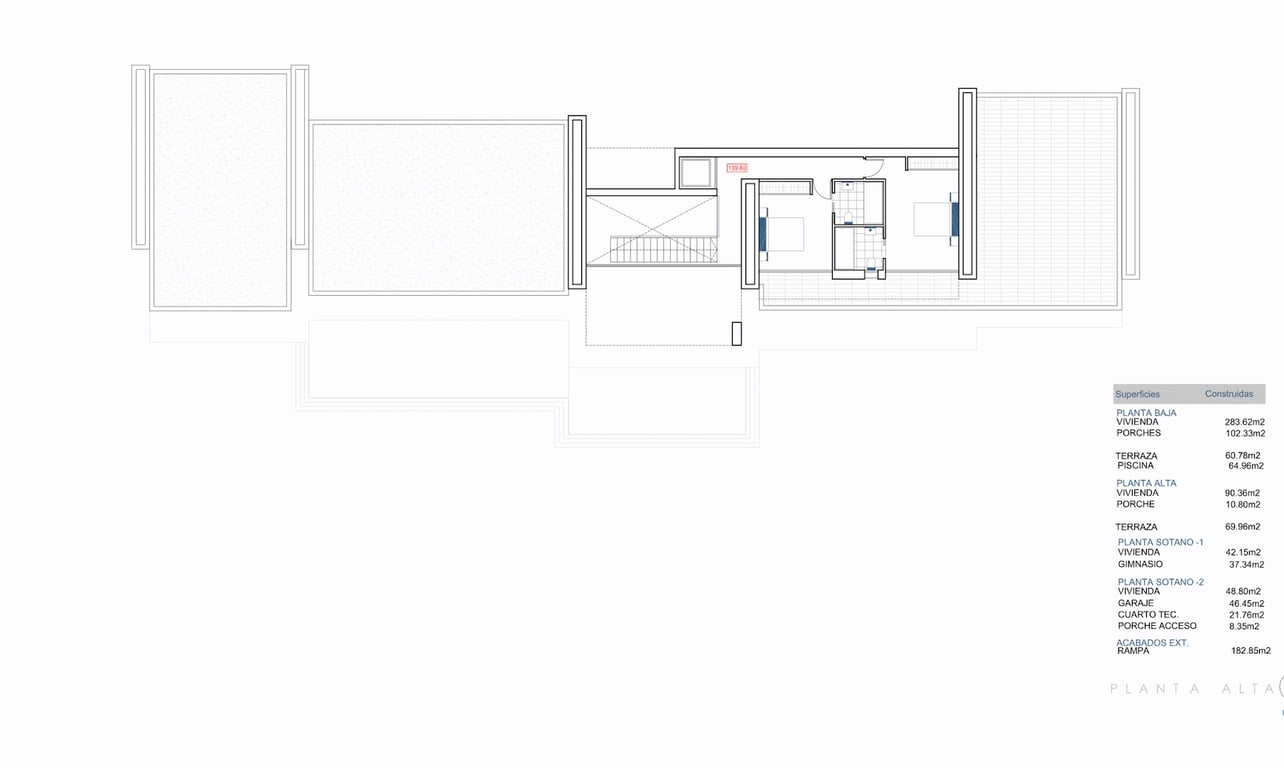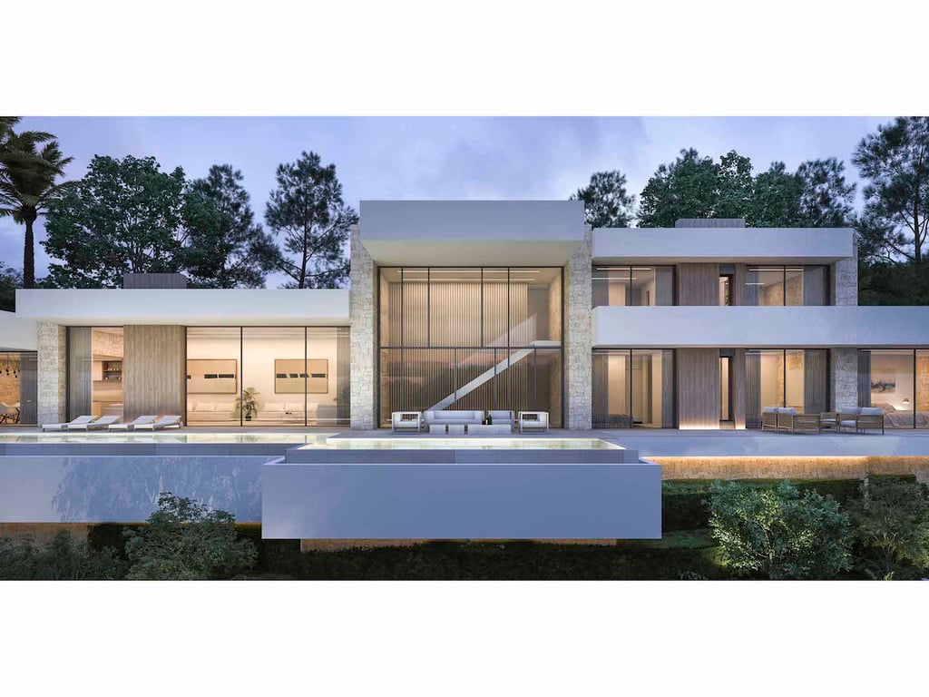 Luxury villa for sale in Benimeit area in Moraira. This high quality villa has 4 floors which are connected with an elevator and an internal staircase. The main floor has a spacious openplan livingdining roomkitchen. The kitchen is fully equipped and has an island for cooking. Sliding doors at ceiling height give direct access to several terraces. In addition there are 3 double bedrooms, all with their own bathroom and a guest toilet. One level up there are 2 more double bedrooms. Each with an e...