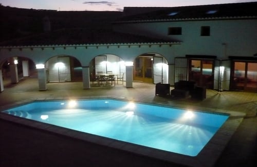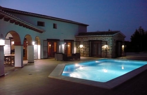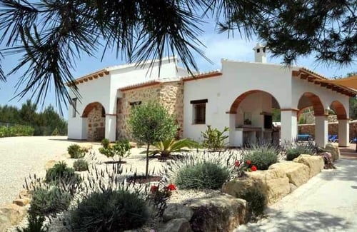 This magnificent villa has been individually designed in the traditional natural stone Finca style and built from top quality materials. Peacefully located within 3 acres of private grounds the views reach far across the valley towards Teulada and still just 8 minute drive into Moraira town centre and beaches. A large part of the plot has been cleared away, in order to create a level for the house, pool and secluded entertainment areas with an impressive covered terrace and barbeque area adja...