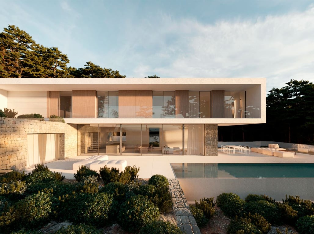 Contemporary Design villa for sale in La Sabatera MorairaA project for an exceptional villa for sale in Moraira's La Sabatera, just 1.4 km from the vibrant town centre offering an array of amenities and access to the Costa Blanca's finest beaches.This modern designer villa boasts captivating sea views, ample sunshine from its southeast orientation, and tranquillity in a traffic-free street. Set on a generous plot of 1,045 m2, the villa spans 605 m2 across two floors plus a basement.Accessed thro...