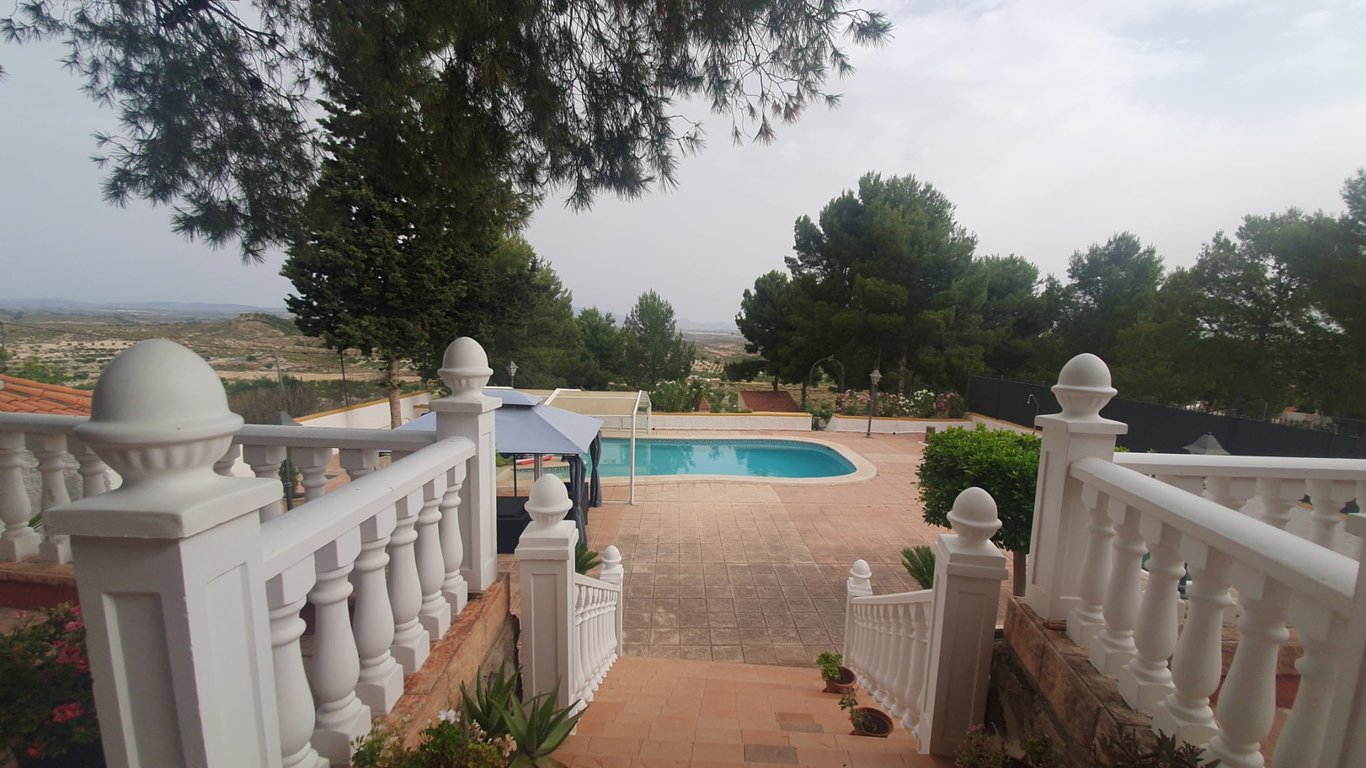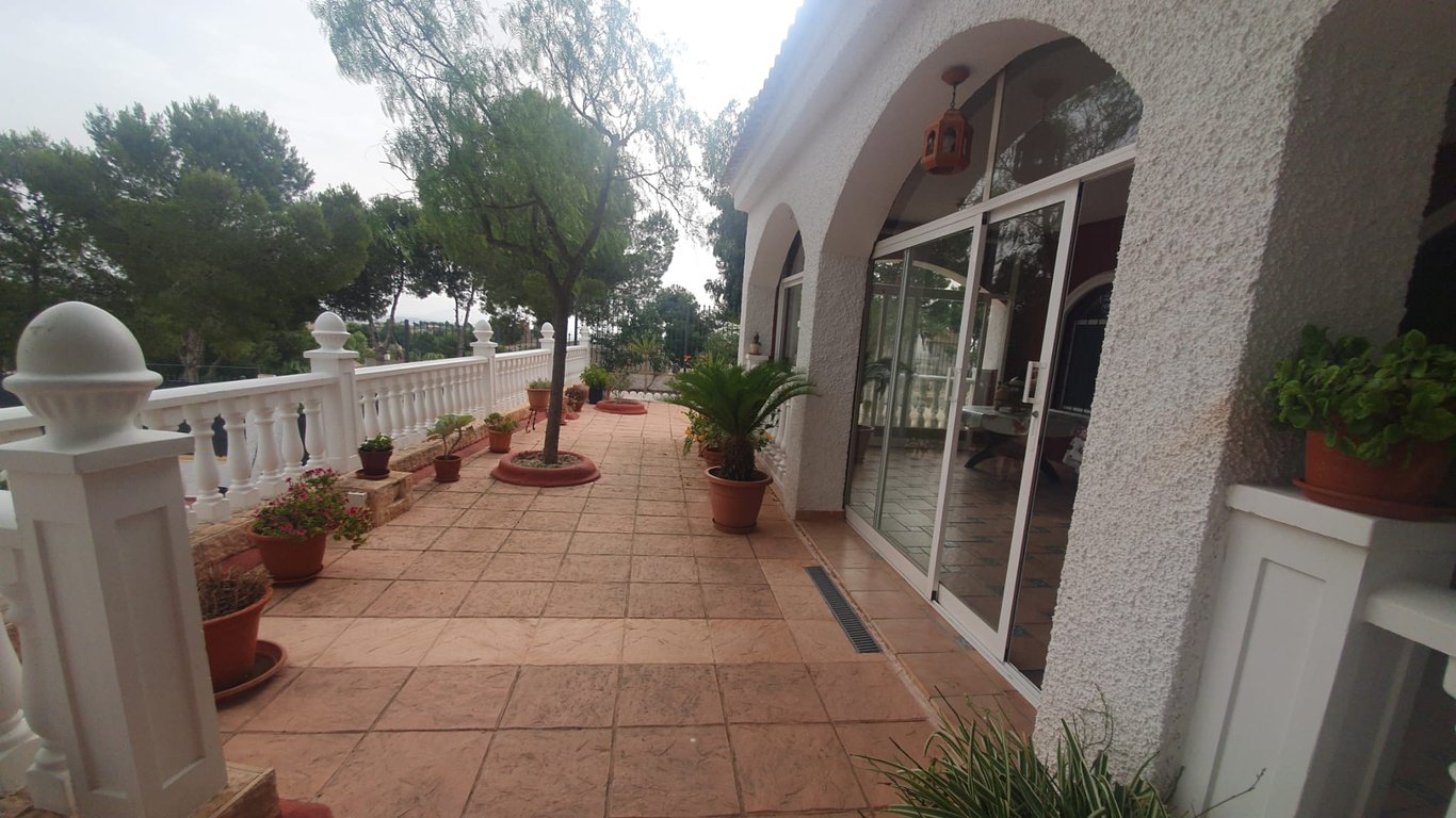 Detached villa with private pool and magnificent mountain views sitting on a big plot near the municipallity of Alcantarilla Town, belonging to Murcia Townhall. This property sits at the top of a hill, offering a tranquile and private location enjoying the views 360 degrees and a fabulous breeze during the summer months. The villa is in perfect state and it was totally redone by the owners interior and exteriorly, maintining the old facade of the property and reinforcing all exteriors and foun...