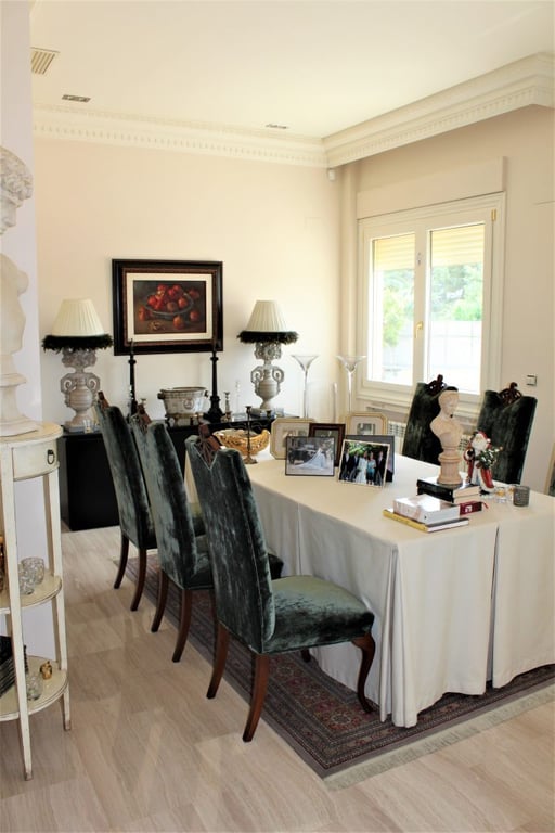 IMPRESSIVE VILLA WITH LAND FOR SALE IN MUCHAMIEL Villa for sale in impeccable condition and finished with high quality materials: • Italian marble floor • cherry wood parquet flooring • solid wood in doors and moldings • fixed furniture in the bathrooms in cherry or oak wood • ceiling height of 3 meters • Self-locking thermo-lacquered aluminum shutters with climalit glass, security exterior • Central heating from the engine room, sealed boiler fed by a high-security diesel tank. • Prepared air ...