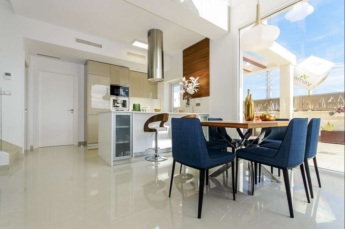 Monte Carmelo Resort is a brand new, innovative and modern residential complex located just 200 meters from Vera Beach. The complex will consist of 100 individual villas with a choice of two models: Laguna Azul and Estrella. We present the Laguna Azul type here. This house, spread over 2 floors, has on the ground floor a spacious living / dining room with large sliding windows that open onto the terrace with swimming pool, an open plan kitchen, a bedroom with built-in wardrobe and a bathroom. On...
