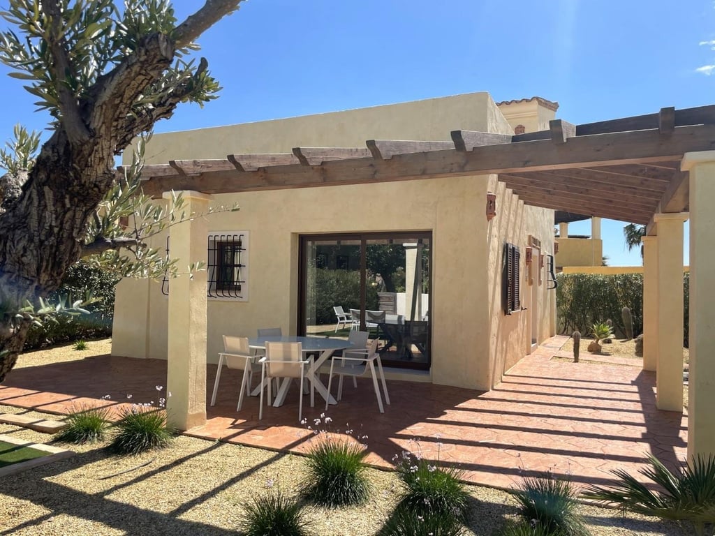 Nestled within the serene internal gardens of the prestigious Desert Gold enclave, this charming three-bedroom Pueblo Villa offers breathtaking views over the award-winning Indiana Championship Golf Course and the surrounding mountain landscape. Set within an intimate, gated community, the property enjoys access to exquisitely landscaped communal gardens and swimming pools, all while benefiting from shared maintenance costs. Inspired by the traditional casas del campo of the Almanzora Valley, t...