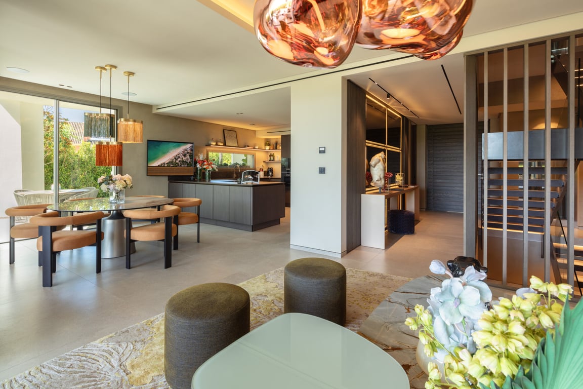 Welcome to Celeste 11: A Modern Marvel in Nueva Andalucia, Marbella! ✨ This stunning semi-detached villa is a masterpiece within an exclusive project of 11 prestigious homes. Nestled within a gated community, Celeste 11 captivates with its modern architecture, featuring sleek lines and a geometric facade that commands attention. The exterior, adorned with neutral-toned natural materials, exudes elegance at every turn. Step into luxury as the property unfolds to reveal multiple covered t...