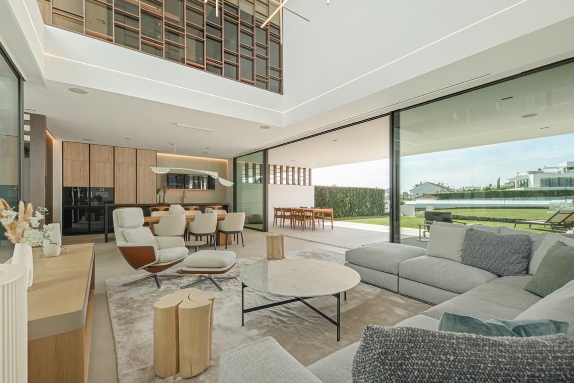 A contemporary four-level villa within the exclusive Vilas 12 enclave on Marbella's Golden Mile, offering three bedroom suites, four bathrooms and expansive terraces culminating in a private rooftop pool and entertaining level just moments from Puente Romano and the Mediterranean. The residence forms part of a gated collection of only twelve villas in one of Marbella's most discreet and sought-after addresses. The entrance opens into a double-height living space arranged around a striking inter...