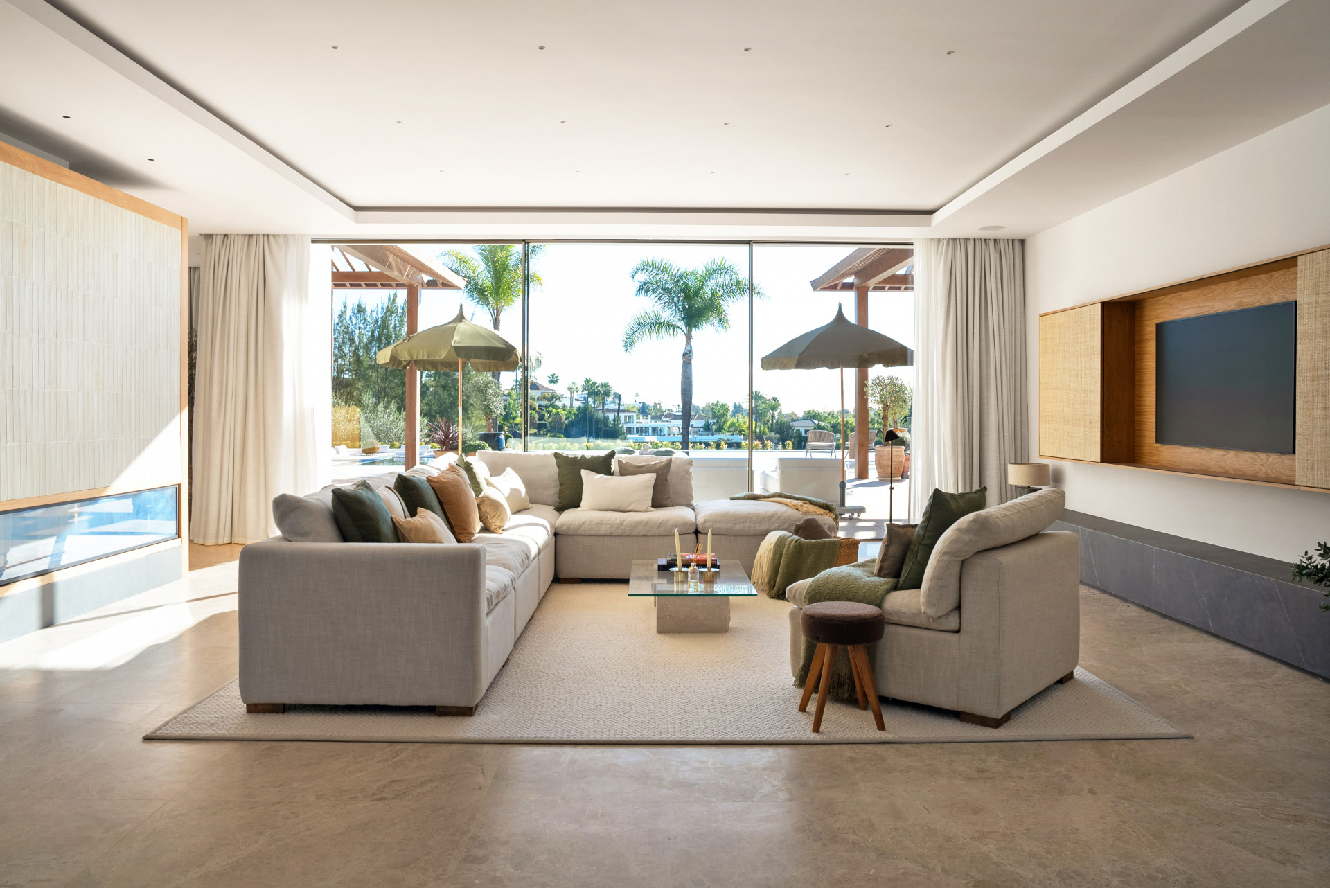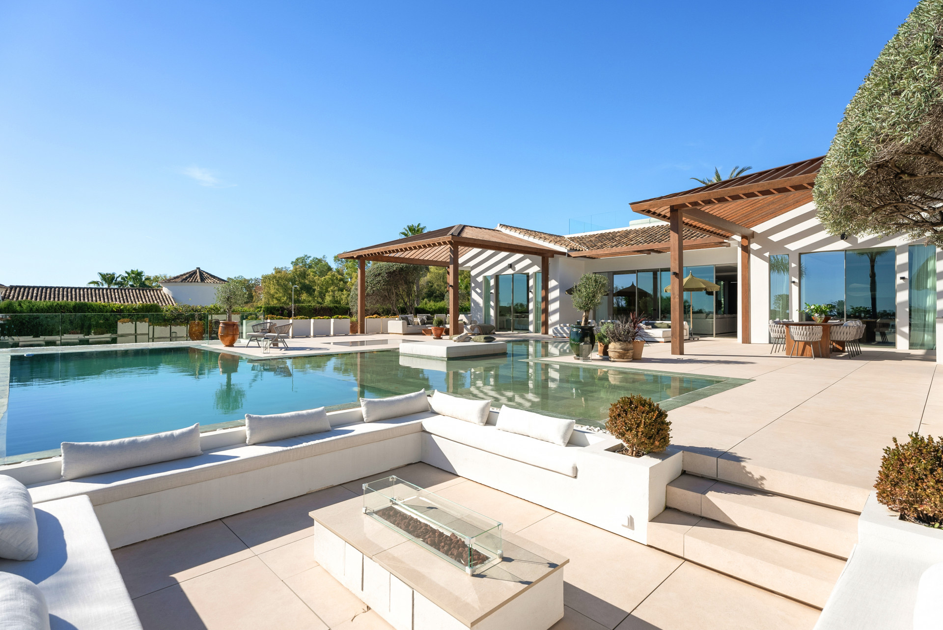 Introducing an exceptional luxury villa situated in the prestigious neighbourhood of Nueva Andalucia, Marbella. Meticulously designed to exceptional standards, this front line golf property boasts six spacious bedrooms and seven modern bathrooms, offering 854 square metres of built space on a 1,543 square metre plot. The home is complemented by an expansive 427 square metre terrace, perfect for seamless indoor-outdoor living in the heart of the Costa del Sol. The villa showcases a wealth of pre...