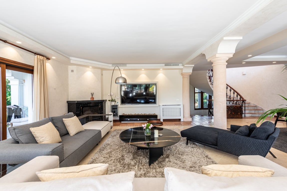 Beautiful classic-style villa with garden in an unbeatable location, walking distance to Puerto Banús and next to the Casino of Nueva Andalucía. This villa, well-built in 2001, enjoys sea views even from the garden. The property is south facing, so it enjoys sunlight during all the day. It includes, on the ground floor: large living/dining room with two fireplaces and access to the garden and the porch; fully equipped kitchen; en-suite bedroom; guest toilet; further bedroom. Upstairs: two bedroo...