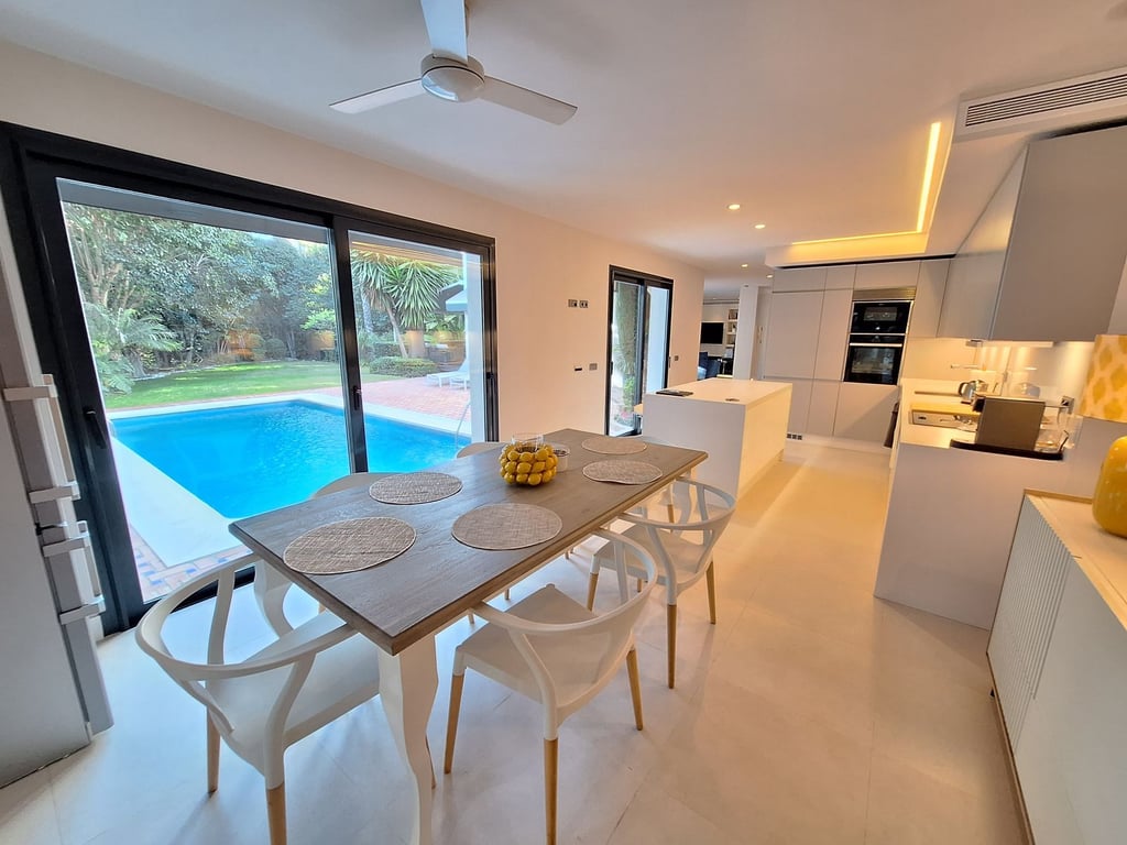 LUXURY FAMILY RESIDENCE SET IN A PRIME LOCATION!!! This exquisitely presented villa is perfectly located in the heart of the prestigious Nueva Andalucia. Set within peaceful plot, with mature planting, offering privacy and seclusion. The south west orientation ensures a bright and sunny aspect to the house. The entry into the villa is accessed via electronic gates leading into a carport and parking space for three cars. As you enter the property you are greeted by a warm and welcoming double...
