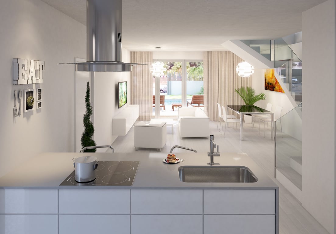 Luxury villas in Villamartin, Orihuela, located in the best part of Pau 8. Quiet residential area surrounded by green areas consisting of 31 independent homes with garden and private swimming pool.There are two different models of villa where the plots are from 200 m2 to 475 m2. On the one hand, villas of 100 m2, 3 bedrooms and 3 bathrooms, living room with integrated kitchen and bedroom on the ground floor, two bedrooms each with bathroom on the upper floor and master bedroom with a large terra...