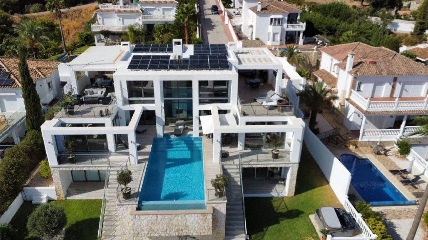 One of the most spectacular villas in Mijas, Located just under the village, this property has been completed with the most comprehensive attention to detail, with 6/7 bedrooms the villa would accommodate a large family, or make a luxury rental property Detached Villa, Mijas, Costa del Sol. 7 Bedrooms, 6 Bathrooms, Built 599 m2, Garden/Plot 751 m2. Setting : Country, Village, Mountain Pueblo. Orientation : South. Condition : Excellent. Pool : Private. Climate Control : Air Condit...