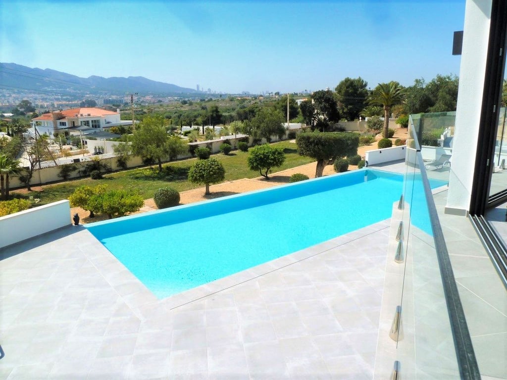 This luxury villa with private tennis court is located in a sought after area of Altea. The property offers privacy, sea views and beautiful panoramic views of the surrounding mountains. The modern villa sits on a large plot of 7.500m2 and consists of 500m2 distributed over 2 levels. This property is characterised by its spacious rooms, terraces and all kinds of comforts. It has 5 bedrooms with en-suite bathrooms, 2 spacious living rooms, a guest toilet and a large kitchen with Bosch appliances...