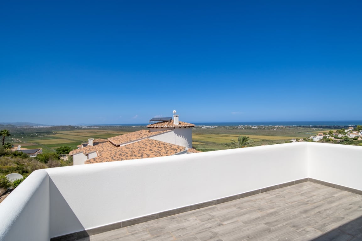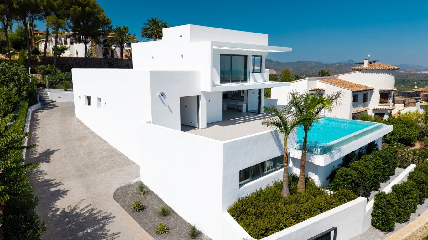 This exceptional new villa in Monte Pego is truly unique. Built by the current owner without consideration for resale or profit, no expenses have been spared in creating a home of the highest quality. Every detail has been carefully considered, combining cutting-edge design, energy efficiency, and luxury finishes. Located on a quiet residential street, the villa enjoys stunning panoramic views of the sea, mountains, and surrounding countryside. The property is contemporary and spacious througho...