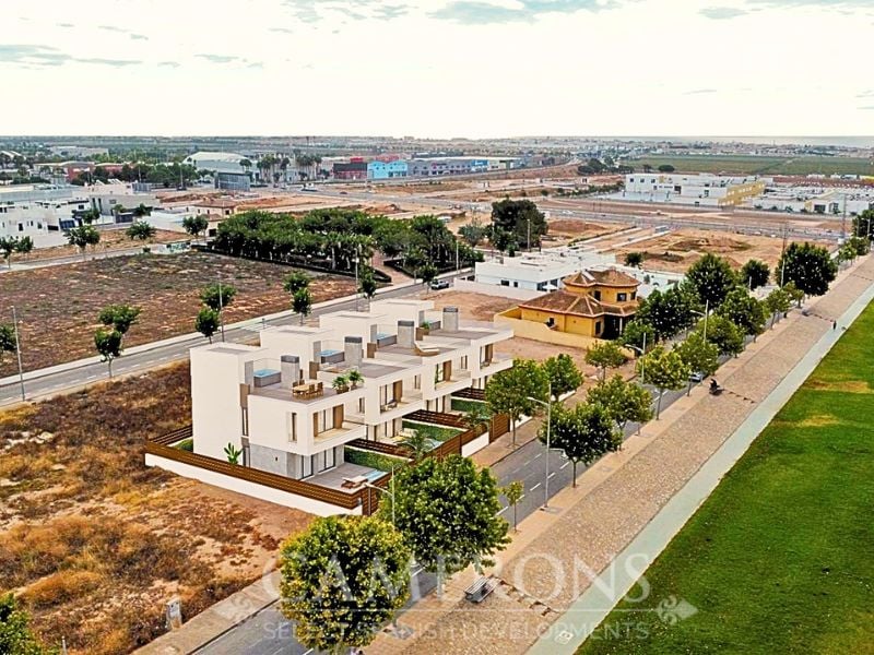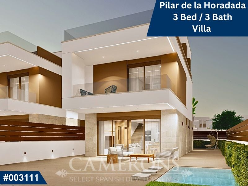New complex of 3 bed, 3 bath Villas in Pilar de la Horadada. These villas are only a short walk from the town centre with all the amenities and services you may need, in a quiet area but still near the town centre and beautiful beaches of Torre de la Horadada.All properties come with terraces, gardens, private roof top solarium, as well as a private pool.The property comprises of a modern open plan kitchen with spacious lounge/dining area with patio doors leading out onto the private terrace, a...