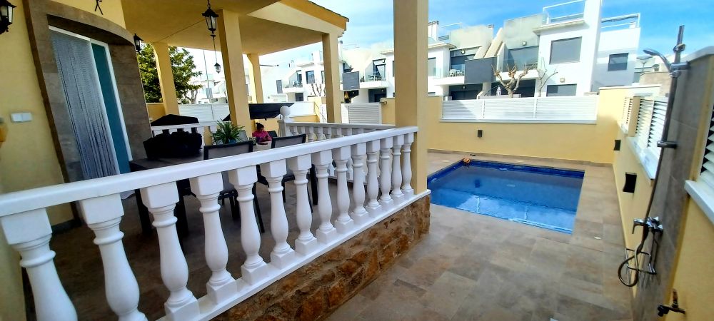OFFER! Semi New! Detached Villa with Pool in Pilar de la Horadada. 3 bedrooms 2 bathrooms Private Pool 116m2 Plot 250 m2 Year Built 2016 Floors 2 Balconies 2 Balcony Surface 67 Distance to Hospital 2 Distance to The Airport 35 Almost brand new villa located in a quiet residential area, walking to all kinds of Services such as Bus Stop, Supermarkets, Mercadona, Hiper Ber, … Schools, Shops, Supermarkets, Restaurants, Bars, … 2 km from the Center of the Town of El Pilar de la Horadada. The house h...