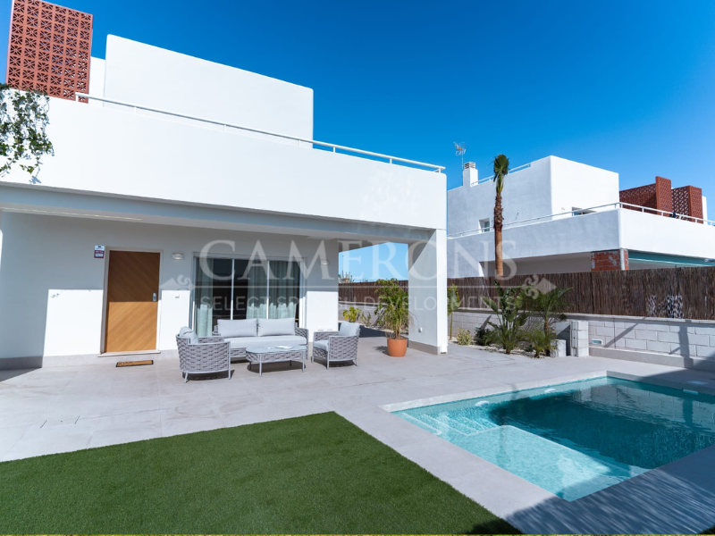 🗝️ ONE KEY READY🗝️New 3 bed 3 bath Villas development in Pilar de la Horadada are now available for sale, situated within walking distance from the town centre of Pilar de la Horadada and a few minute’s drive from the beaches of Torre de la Horadada.These luxury villas are finished with lots of extras, finished kitchens, LED lighting, landscaped garden with private pool and solarium.These luxury villas are built all on two level and consists of a lounge/diner with patio doors leading out into...