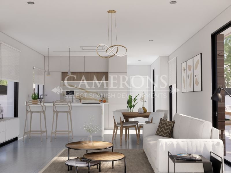 New exclusive and luxurious project of modern villas in the residential area of Lo Romero Golf, in Pilar de la Horadada. This golf resort is ideally located, only 7 minutes’ drive from the town centre, and 12 minutes from the fabulous beaches of Torre de la Horadada.The project comprises 4 villas with a private pool.These villas boast 3 bedrooms and 3 bathrooms. Downstairs an open living area with the kitchen, dining area and lounge, as well as a guest toilet and one bedroom. The other two bedro...