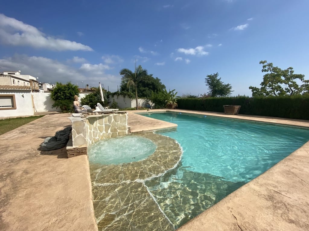 Fantastic opportunity to own a luxurious villa with 2 separate furnished outbuildings, private pool with a jacuzzi and stunning views of the town and the mediterranean. This property was reformed in 2008, boasts 350m2 build size, 1600m2 fully fenced plot, radiators and air conditioning throughout, parking for many cars, and just a short walk into town. 3 kms from the sandy beaches. The main villa consists of two separate living accommodations: The ground floor has a double bedroom, large lounge/...
