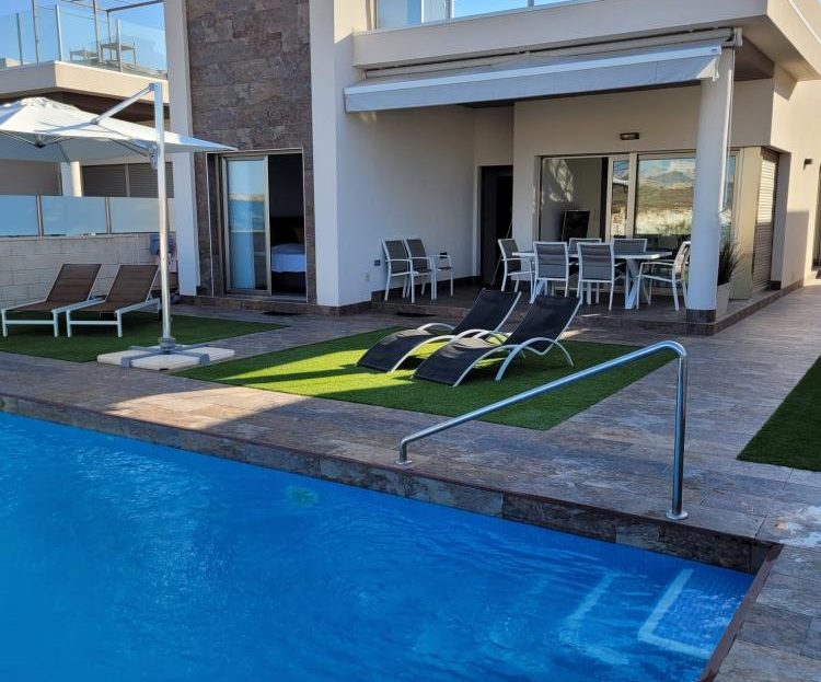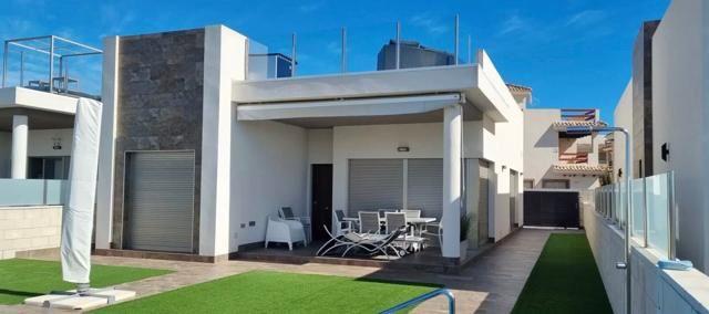 Amazing Views! Opportunity One Level Villa in Villamartin/ Playa Flamenca 3 bedrooms 2 bathrooms Private Pool Great views Rare Opportunity Solarium Fully Furnished Build 118 m2 Plot 325 m2 This ground floor villa consist of a spacious living / living room with large open kitchen, a storage / laundry room, 3 bedrooms with fitted wardrobes, 2 bathrooms and a beautiful garden landscaped with artificial grass and tiles. There is space for 1 car to park on site and a swimming pool of 3x8m and a huge...