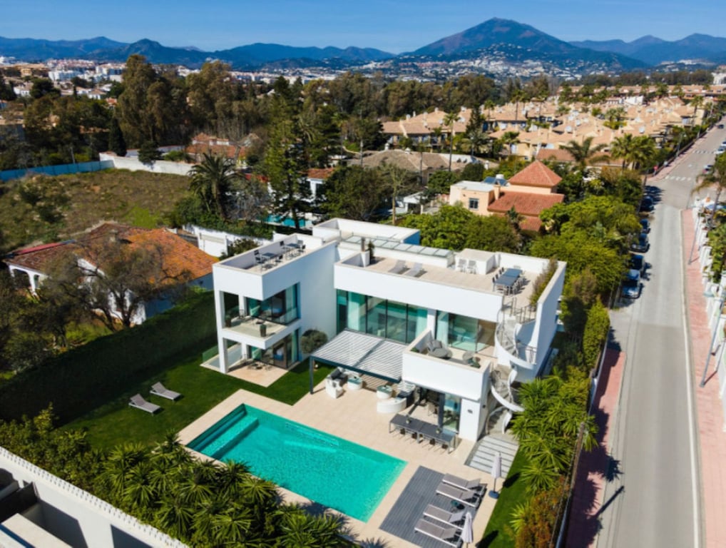 This contemporary villa provides the ultimate in beach side luxury living. Located in the beautiful beachside resort of Puerto Banus, 200 meters walking distance to the beach, close to shops and nightlife of Puerto Banus and short driving distance from Marbella centre and San Pedro. Designed across 3 floors, all accessible through the private elevator, the property offers 7 bedrooms and 7 bathrooms each with an outdoor terrace. Entrance level boasts of a large airy open plan living with double h...