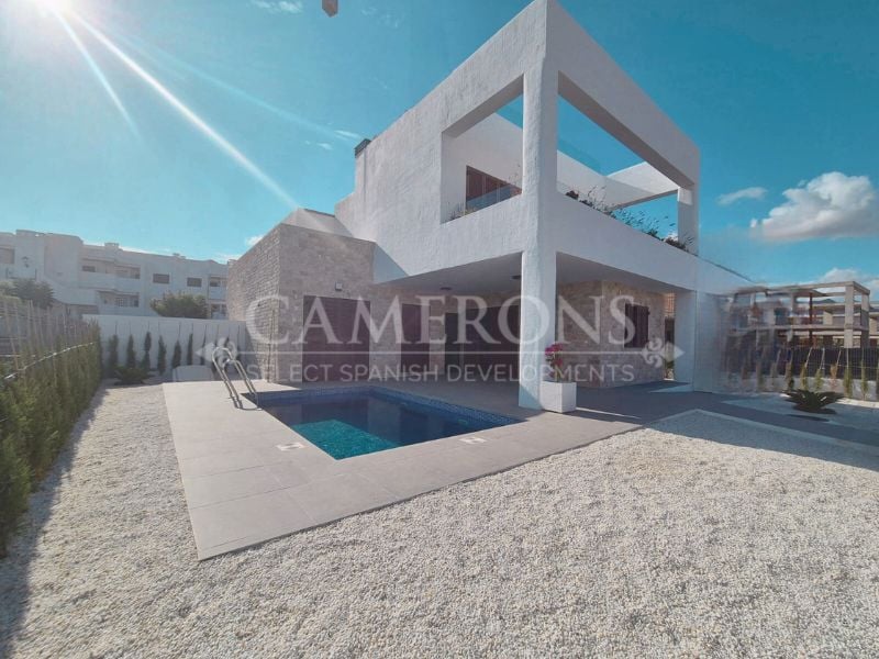 Semi-detached villas only 600 metres from the beaches in Mar de Pulpi, Almeria.These modern villas with 2 and 3 bedrooms with large gardens and the option of a private swimming pool are located in a privileged location, just 600 metres from the beaches at La Entrevista and Los Nardos. With everything you need to live peacefully, within a nice Mediterranean style urbanization equipped with a shopping centre, a supermarket, restaurants, shops and a sports centre. The development offers 10 semi-de...