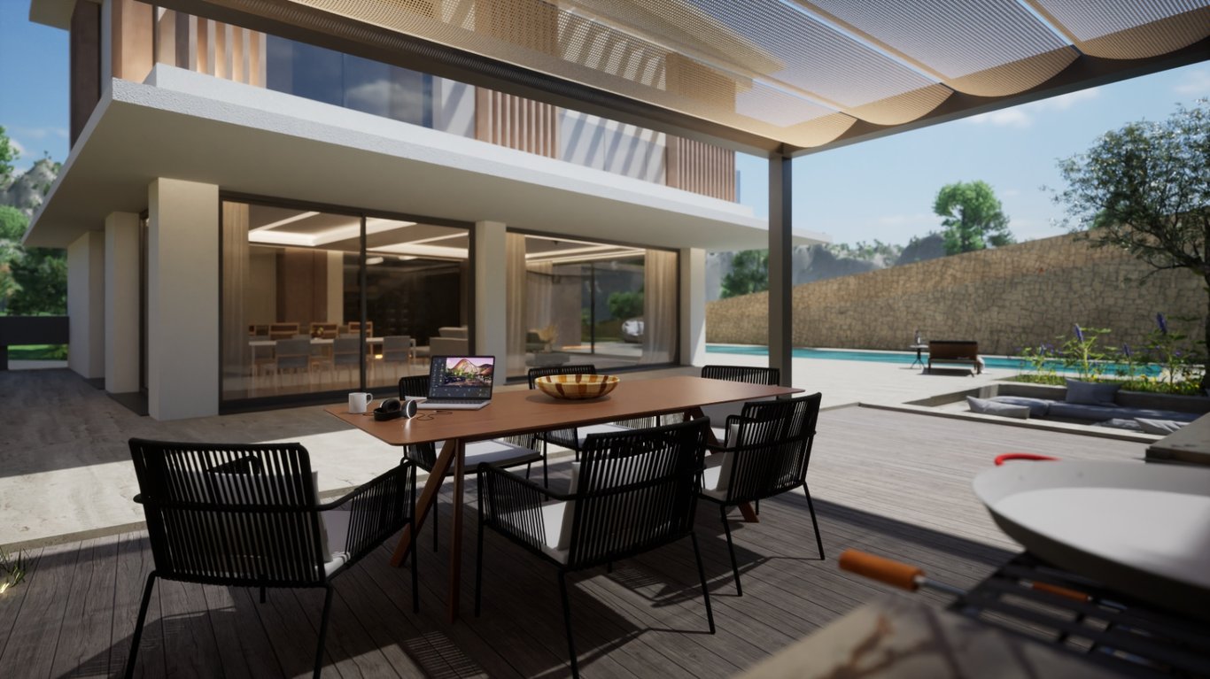 This exceptional villa occupies a privileged position in Arnella, one of Moraira’s most peaceful residential areas set just above El Portet beach. Positioned on a generous 820 m2 plot, the property blends refined design with everyday practicality, offering a layout that flows effortlessly between indoor and outdoor living. The entrance opens into a spacious hall with a cloakroom and guest toilet, guiding you toward a ten-metre open-plan living and dining room. Floor-to-ceiling windows bathe the ...