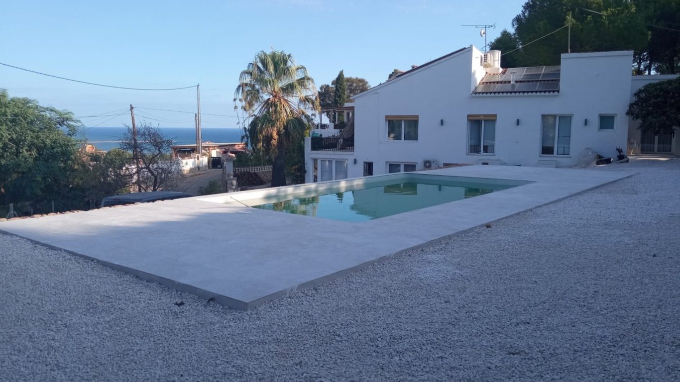 This wonderful villa with fantastic sea views is located in a residential area only 10 minutes from the town centre and very close to the prestigious area of Las Rotas.~ The villa has been completely refurbished inside and the outside area is being finished.~ ~ The property, refurbished with very good taste, has 241 m2 distributed in two floors. On the ground floor there is a spacious and bright living-dining room, a modern open kitchen, a bedroom with bathroom en suite and a guest toilet.~ On t...