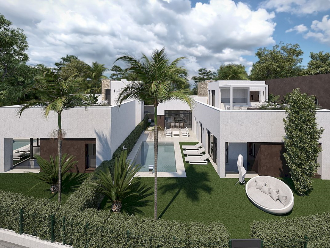 Villas Liefde is a new resort in the region of Murcia surrounded by excellent golf courses and just 10 minutes to the sandy beaches of the Mar Menor Sea. Villas Liefde is composed of 2 one level villas with basement, in plots of nearly 400 M2 each one, with private pool, garden area and large solarium on the roof. Liefde Villas include 3 bedrooms, 2 bathrooms and guest toilet and have been designed with a contemporary style and an open planned concept, consisting of a fully-fitted kitchen ...