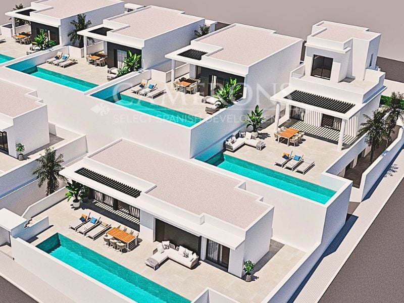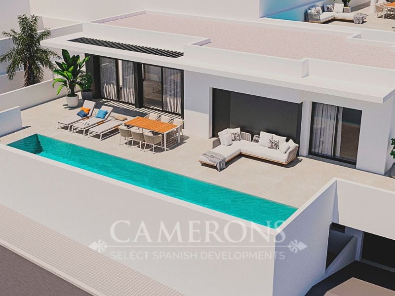 🌟 2 KEY READY! 🌟Stylishly designed villa; distributed over two floors with spacious private pool and ideal sun orientation, overlooking the mountains.The living room and kitchen layout merges with the amazing outdoor terrace and large pool. The bedrooms are located in the cozy under-build together with a second entertainment room that could be turned into an additional bedroom. All homes include private pool, garage, electrical appliances, light fittings, blinds and air-conditioning. Set in t...