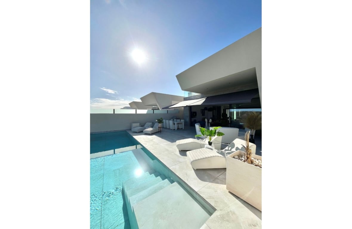This modern villa is spread across two floors and offers 5 bedrooms and 5 bathrooms, along with various features designed for a comfortable and functional lifestyle.On the main floor, you'll find a spacious living-dining area with a fully equipped modern kitchen. This level also includes two bedrooms, including the master suite, each with en-suite bathroom. Outside, there is a private swimming pool and a large terrace, perfect for enjoying the Costa Blanca's climate.The lower level features thre...