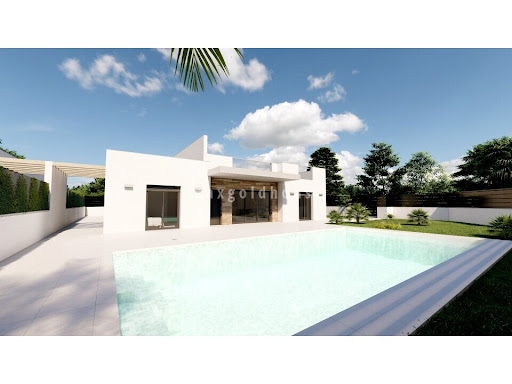 Are you looking for a new build villa on a bigger plot in a typical Spanish village, but not too far away from the Medsea? Then this project in Roldan, only 15 minutes driving to Mar Menor, is something for you. These 2 villas on 1 level with 83 sqm solarium with summer kitchen come with 4 bedrooms, 3 bathrooms, spacious and bright living / dining area, open kitchen with island, and utility room, and are built according the highest standards. Included in the price are kitchen appliances, pre-ins...