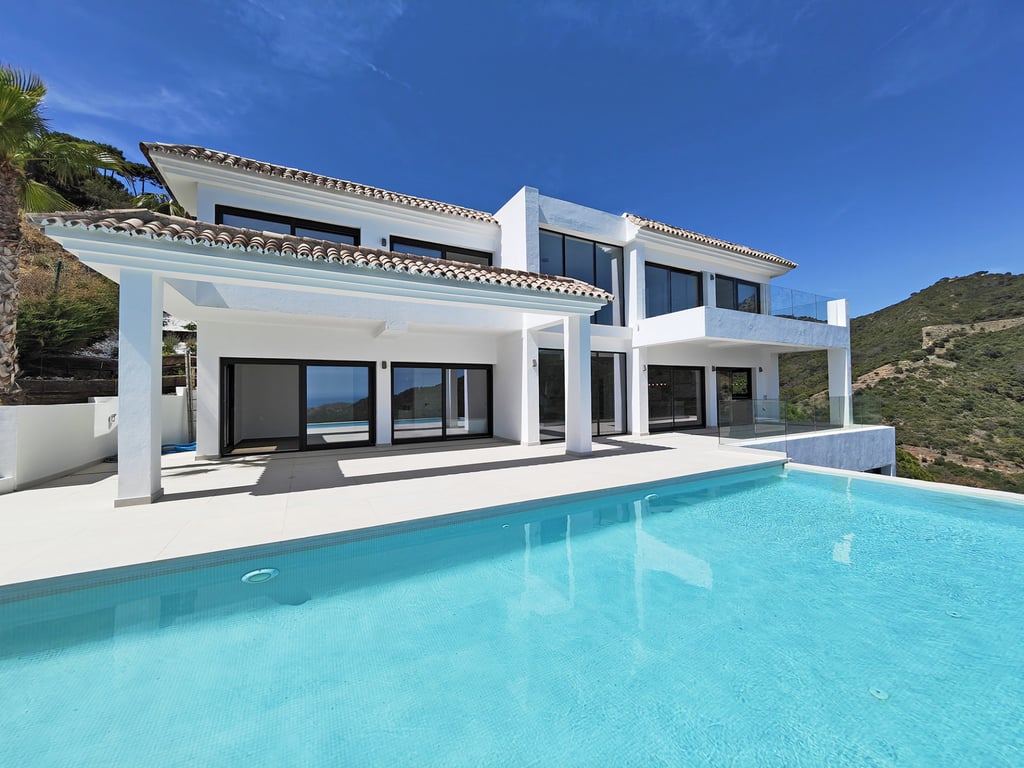 Welcome to this spectacular villa for sale in Monte Mayor, Benahavis with panoramic views and luminous contemporary interiors. This stunning property is designed with expansive glass features, seamlessly integrating the outdoors with the indoors, allowing you to fully appreciate its spectacular position and the stunning natural scenery surrounding it. This property features a perfect blend of modern elegance and comfortable living, creating a truly inviting atmosphere. From the moment you step ...
