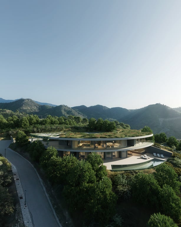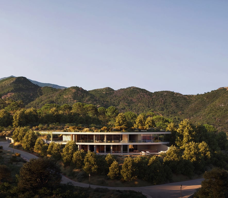 Welcome to this spectacular development comprising 4 luxury eco-friendly villas for sale in Monte Mayor, with architecture that is not only visually captivating but also designed for comfortable, everyday living, creating a harmonious blend of style and functionality. The 5-bed, 5- bath villas are designed to blend with the natural contours of the land, following the mountain’s shape and slope rather than dominating the landscape. Inspired by the rugged terrain and the temperate Mediterranean c...