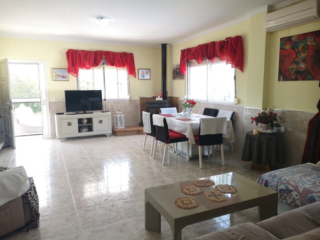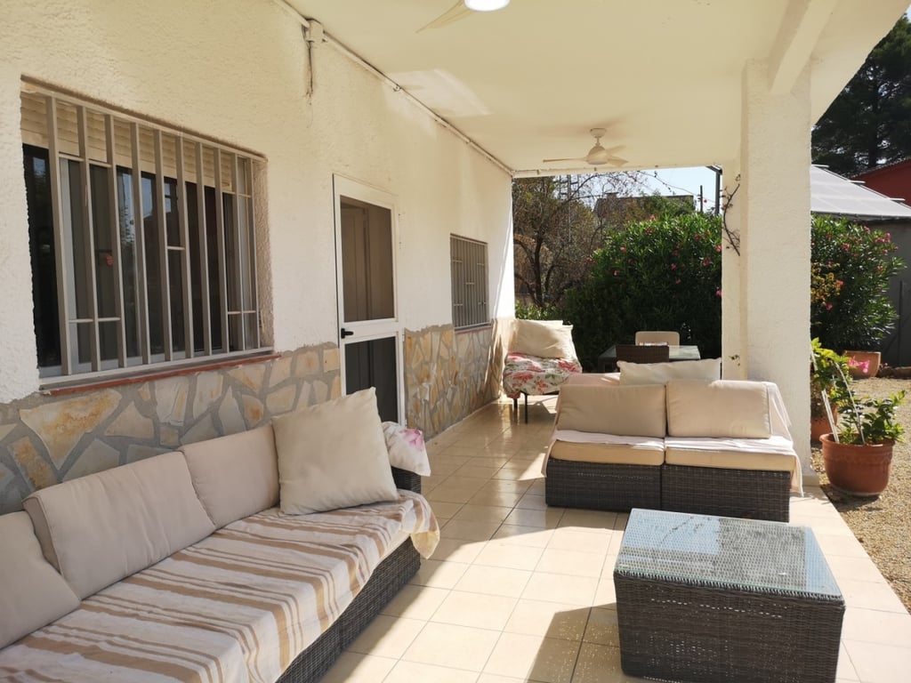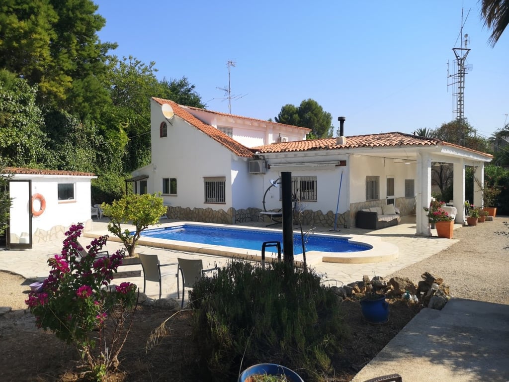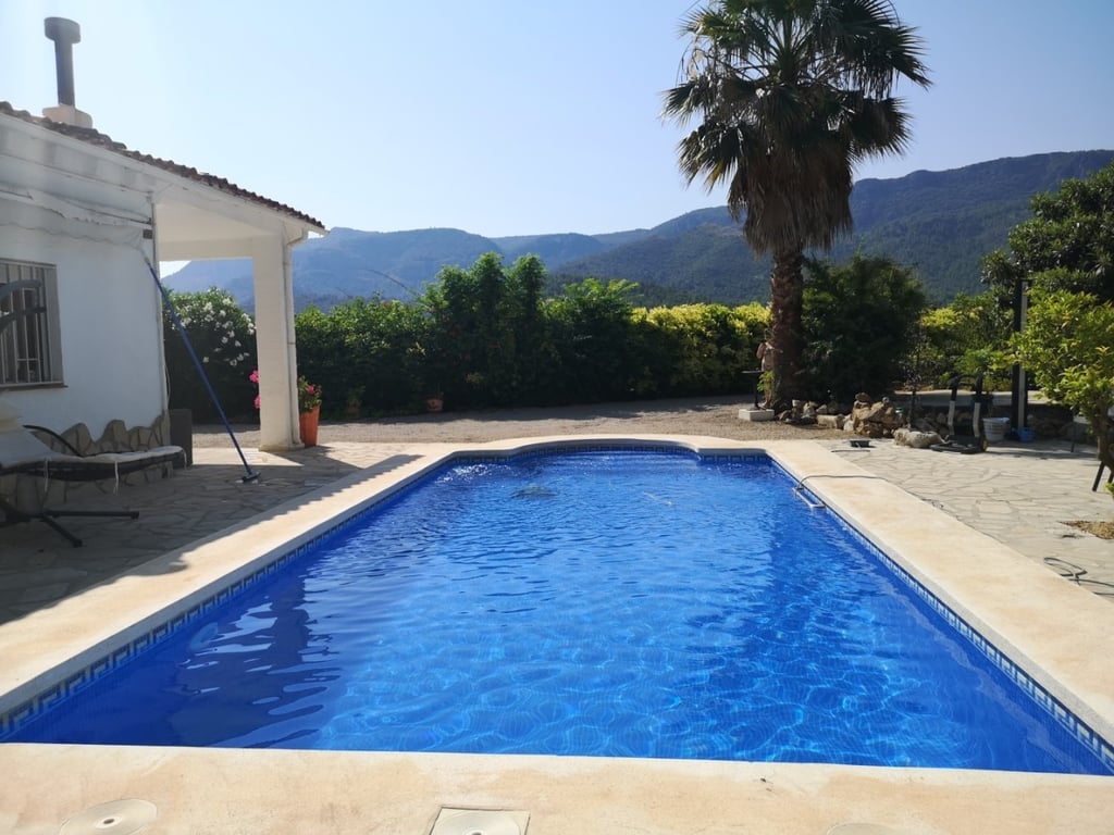LOCATED IN THE VILLAGE! Private villa in a peaceful location of the pretty village of Rugat. Less than 30 minutes drive to the blue flag beaches of Gandia and Oliva. The low maintenance garden is fully fenced and gated and has some beautiful views of the surrounding mountains. Walking down the gravel driveway, we pass many fruit trees, lots of space for parking, and modern salt water swimming pool with roman steps and lights. There is a lovely terrace to the front of the property, where you can ...