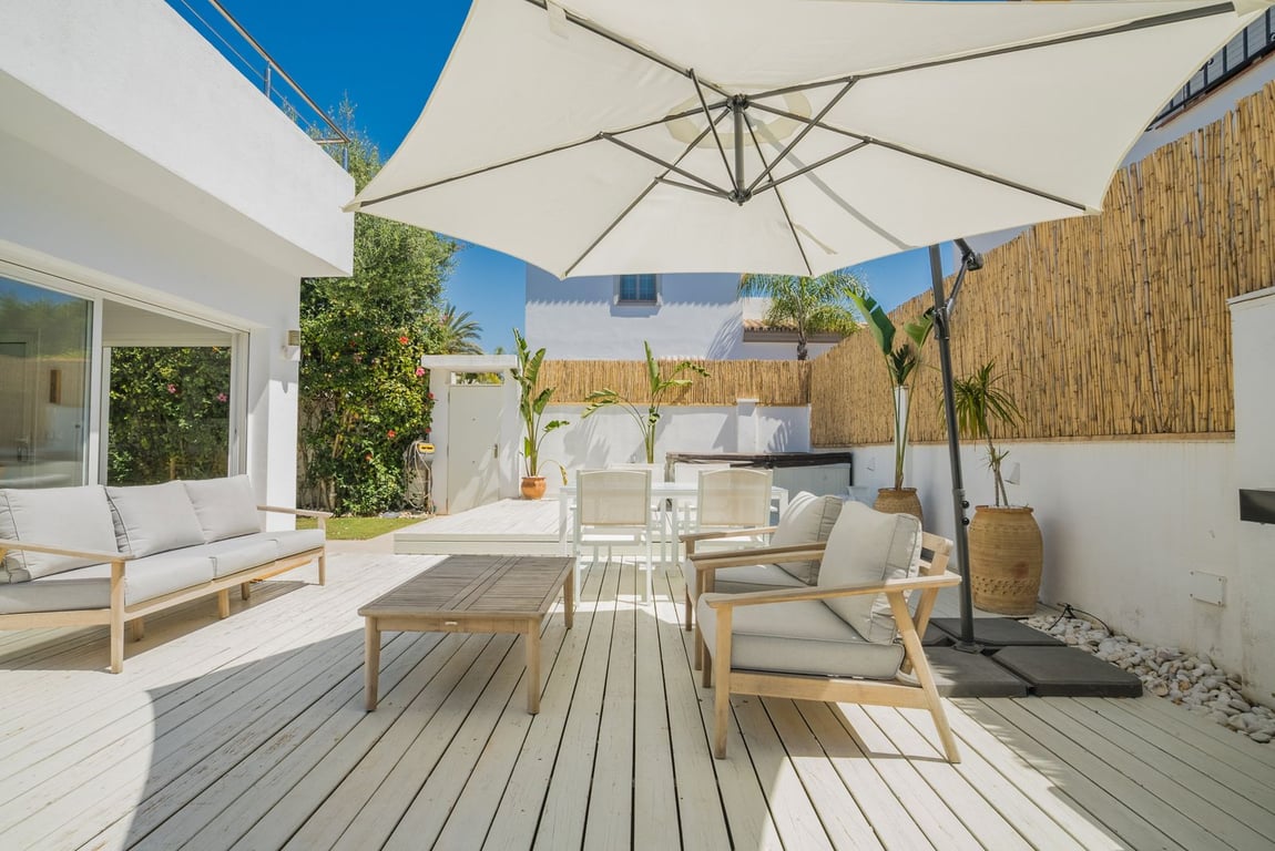 Welcome to our new listing in San Pedro de Alcántara beachside. Location - just a few minutes walk from the beach and the paseo with all the resturants. The villa is recently renovated with an open plan kitchen/livingroom. On the top of the roof you will find a lovely solarium where you can enjoy the sun and relax. In the villa there is 2 spacious bedrooms and 1 bathroom. The flow of the villa in lovely, a combination of outdoor space combined with the indoor space makes the outdoor and indoor ...