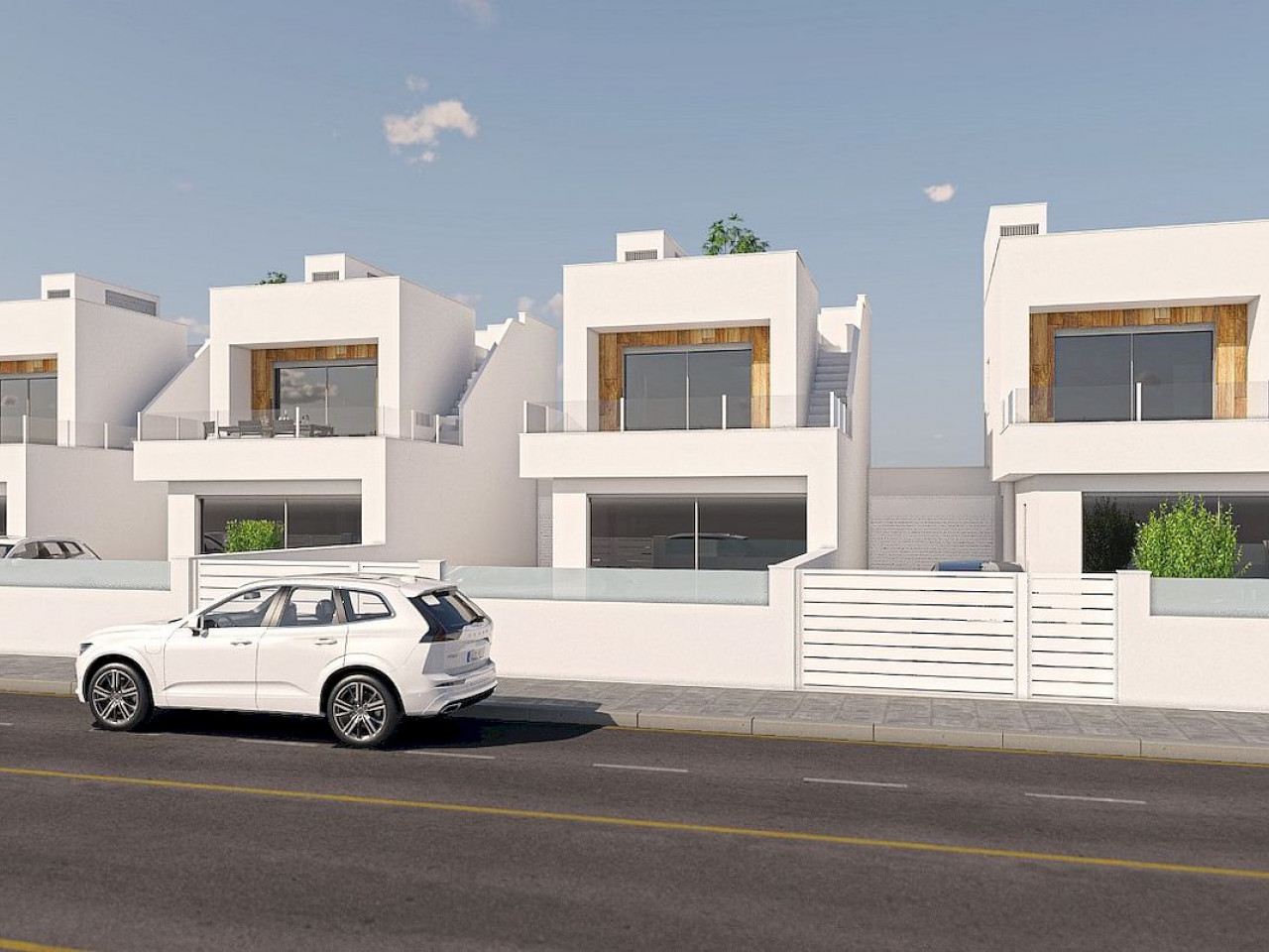 A small development of five modern style villas located in the heart of the Spanish village San Pedro del Pinatar. These stunning spacious villas have been thoughtfully designed to provide the perfect individual home, with spacious ground floor terraces with off-road parking, private pool, summer kitchen and large-format sliding glass windows. They have a living room with modern open kitchen and sliding windows connecting with the garden and sunbath area. There is one bedroom on the ground...