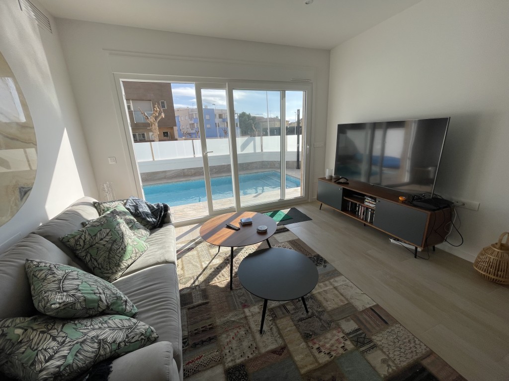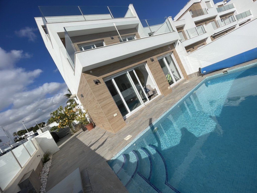 VILLA - 4 BEDROOM, 3 BATHROOM WITH PRIVATE POOL IN SAN PEDRO DE PINATAR InterProperty Sales are delighted to present this Stunning DETACHED VILLA with luxury qualities of 4 bedrooms and 3 bathrooms. On three floors: ground floor with fully equipped kitchen with island, one bedroom, one bathroom and one storage room, first floor bedroom, bathr...
