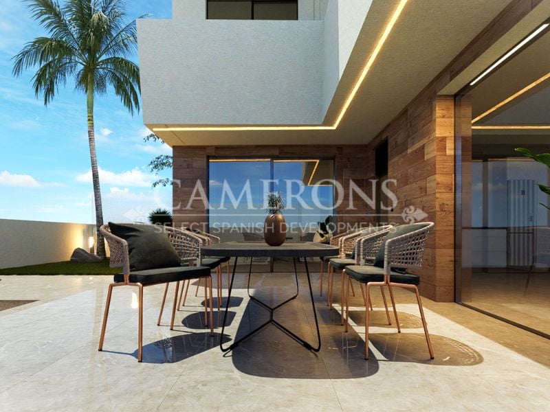Stylish, contemporary villas with private swimming pool located in the town centre of San Pedro del Pinatar.Awesome design, these beautiful two level villas have been thoughtfully designed to provide the perfect individual private contemporary living space, featuring double full glass sliding doors that open directly on to a terraced area with private swimming pool, enclosed gardens with off road parking. “SUN ALL DAY” with first floor terraced area to enjoy the sun all day long … Located in a c...
