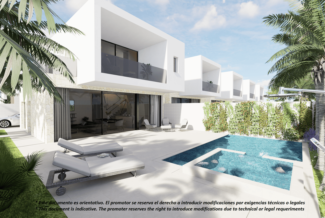 Last One Available. Amazing Modern Villa with Private Pool in San Pedro del Pinatar. New Build Detached Villas. 3 bedrooms. 3 full bathrooms. Complete kitchen. Private pool with jacuzzi. Terrace. Garden. City center 700 m Beach 2km Development was born from the desire to offer elegance and timelessness in a home. If you are looking for a modern house in the wonderful coastal district of San Pedro del Pinatar, well located with respect to schools, shops, sports centers and public transport… you ...