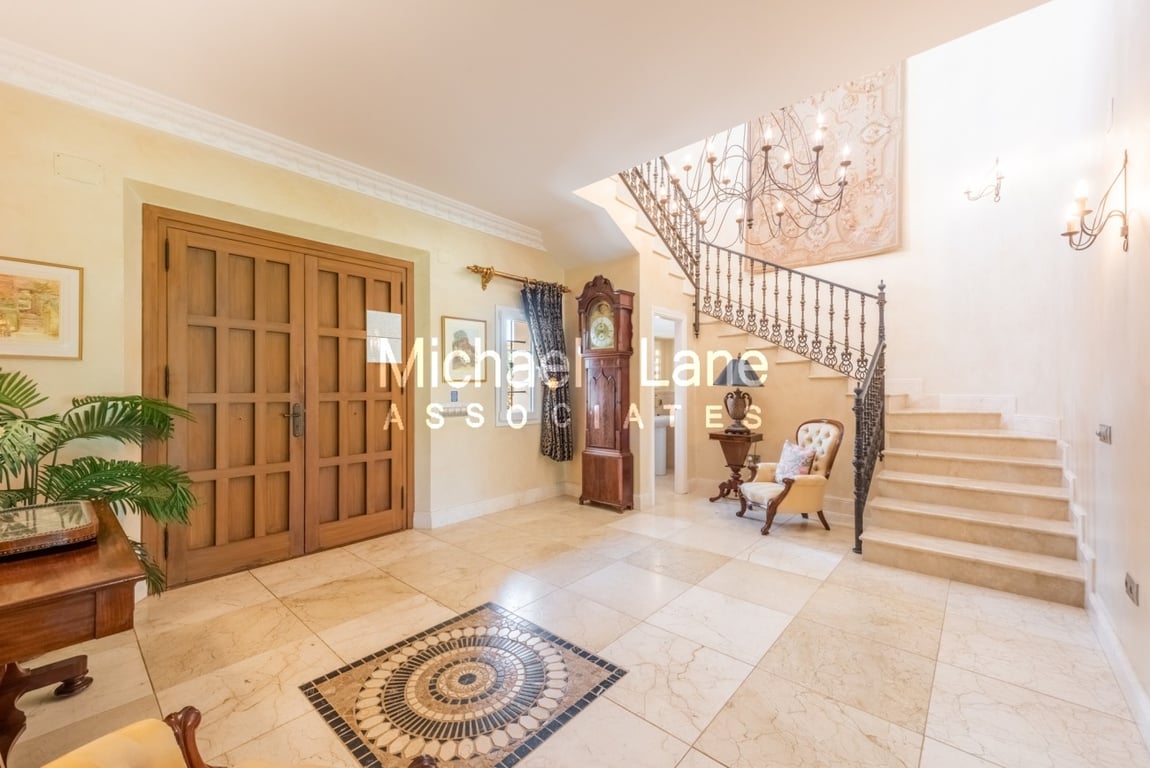 Stunning villa located in the prestigious urbanisation San Roque Club. Located on the tenth hole of the "Old Course", this property offers beautiful views to the East over the "New course" and towards the sea, as well as the mountains of Sierra Bermeja in the north-east. Built in 1999 but completely upgraded in 2005 now with 7 bedrooms, 5 bathrooms and a downstairs WC. The beautiful entrance hall leads to a large sunken formal lounge boasting a large fireplace and multiple seating areas. This la...