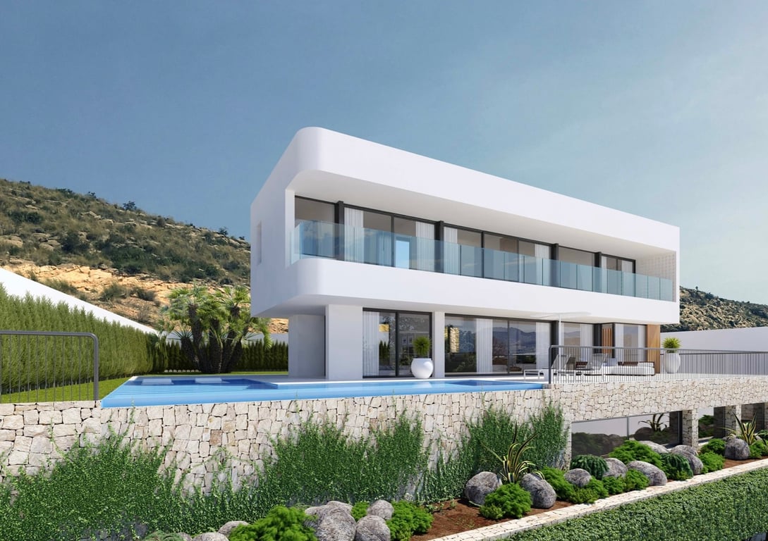 DONT Miss out LAST Remaining Ultra luxury 4 bedroom villa! It is set on a development called Sierra Cortina, Finestrat. This part of the mediterranean coast boast 250km of stunning beaches and coves with spectacular views. The towns of Albir, Altea and Benidorm are only a short drive away. Finestrat is set between the mountains and the sea so benefits from both views. Also within the development you have a gym, sports facilities, restaurants and cafes. The Alpha Villa has a very unique design wi...