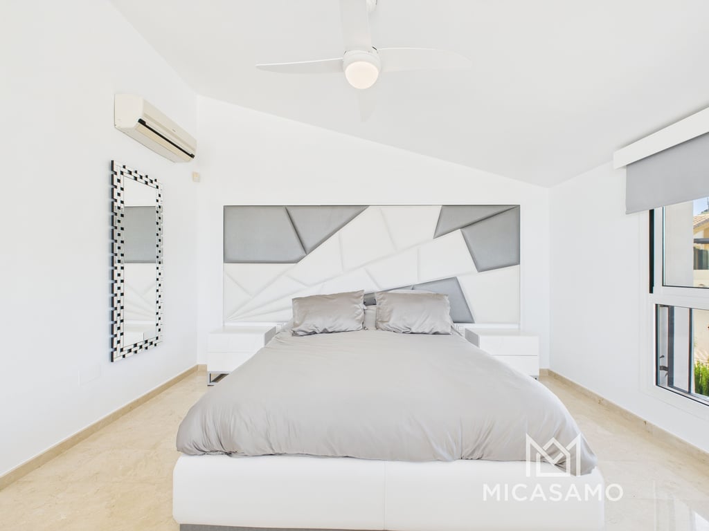 Private Pool - Sea Views - La Manga Club - Terraces Wonderful villa in the hills of La Manga Club, with amazing views of the Mar Menor, La Manga Club, the golf courses, and the surrounding mountains. This villa is distributed over three levels with a stunning spacious master bedroom located on the top floor with floor-to-ceiling glass doors to offer panoramic views, next to a lounge area so you can enjoy the views while unwinding and watching some tv, the bedroom also has a dressing area and a...