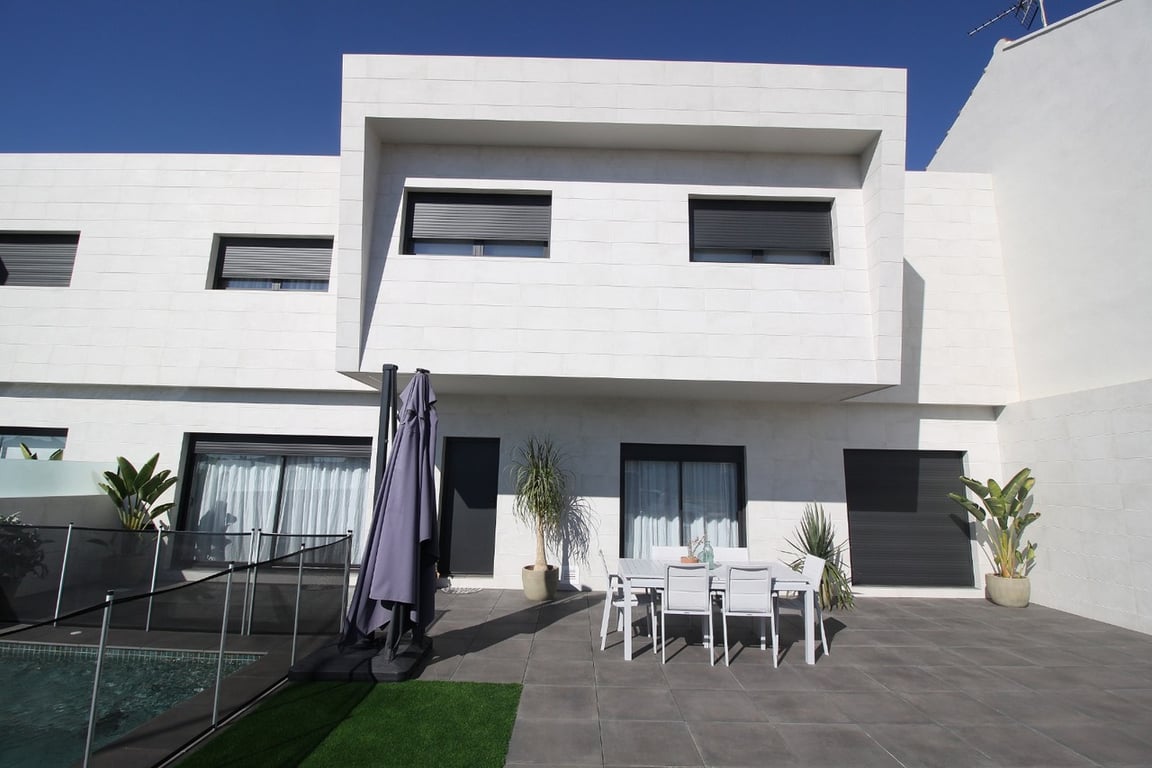 Modern villa with 4 bedrooms and private swimming pool in San Pedro del Pinatar, Murcia close to all amenities and the lovely white sandy beaches of San Pedro del Pinatar and Lo Pagan.The property will be sold fully furnished and consists of a spacious living/dining room, a fully equipped kitchen, four bedrooms with fitted wardrobes, two bathrooms with underfloor heating, air conditioning (hot/cold) throughout the property, storage room, a large terrace with garden and private swimming pool with...