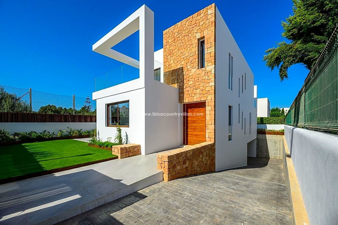 ibiza Country Villas presents this newly built modern detached house in the village of Santa Gertrudis. INTERIOR: The construction is situated in the middle of a plot of approx. 500m2 and is distributed over basement and two floors, with a constructed area of approx. 250m2. In the basement are the garage with generous space for two cars and a technical room. On the main floor there is a large, bright and south facing open plan space with views over the swimming pool, this space is shared by...