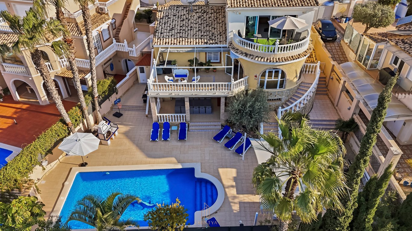 Exceptional 7-Bedroom Villa with Guest Apartment, Tourist License & Proven Rental Income – Gran Alacant This is a rare opportunity to acquire a fully legal and exceptionally spacious villa in one of the most attractive areas of Gran Alacant, within walking distance to the town centre and amenities. With a total approved built area of 349 m2 on a 650 m2 plot, this property stands out in an area where many homes do not have fully registered extensions. Here, everything is legally approved an...