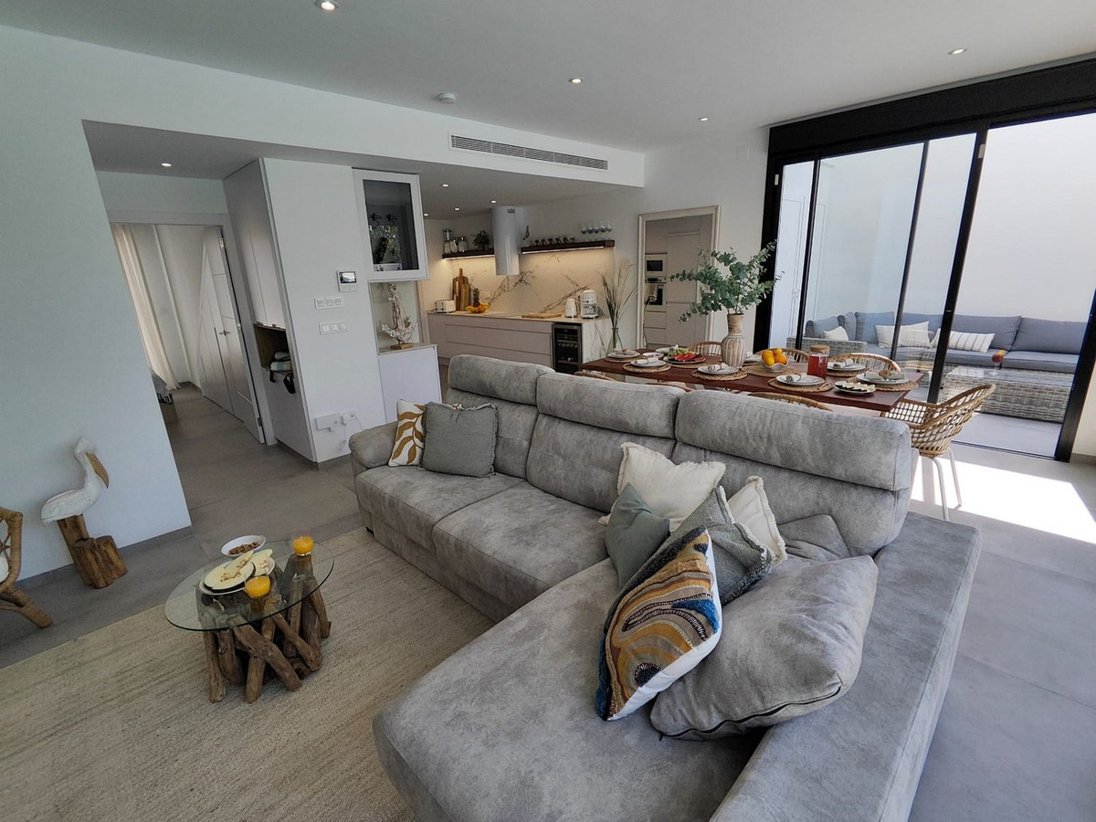 We are excited to present this beautiful Detached Villa located in a popular area of Santiago de la Riberia and only 800m to the beaches. This villa offers everything you could desire and more, featuring three bedrooms with fitted wardrobes and private terraces, three bathrooms with underfloor heating, a spacious living/dining area, and a fully fitted kitchen. The property is bathed in natural light, with sliding patio doors providing direct access to private gardens, terraced areas, and a p...