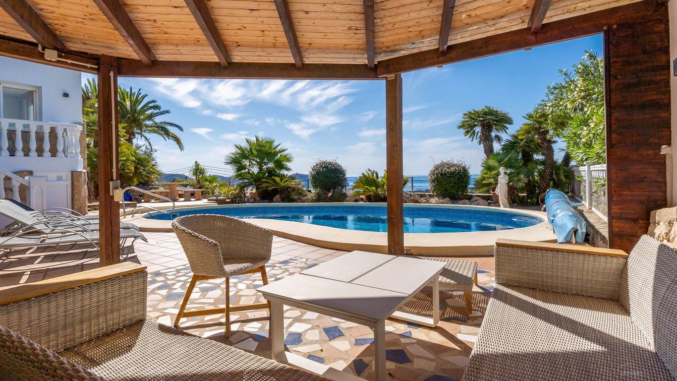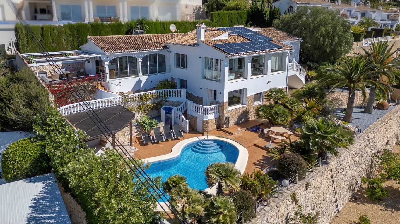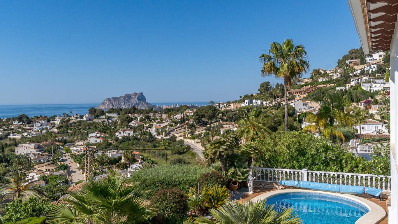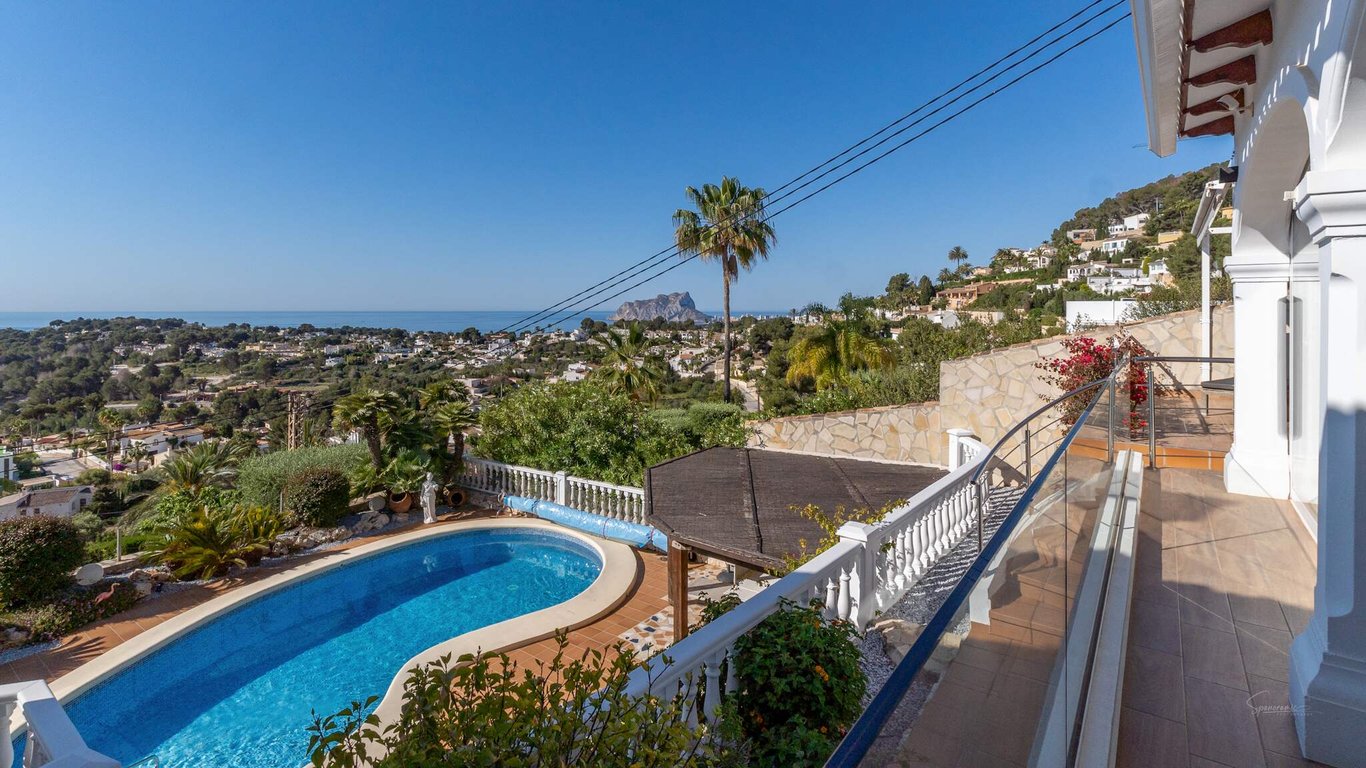 This Mediterranean-style villa sits on an elevated plot and offers breathtaking 180-degree sea views stretching from Moraira to Calpe. Designed for those seeking privacy, generous spaces and unobstructed panoramic vistas, the property combines comfort, functionality and an exceptional coastal setting. The main floor features 176 m2 of interior space plus a 62 m2 glazed terrace. Its open-plan layout integrates the living room, dining area and kitchen into a bright, expansive environment framed by...