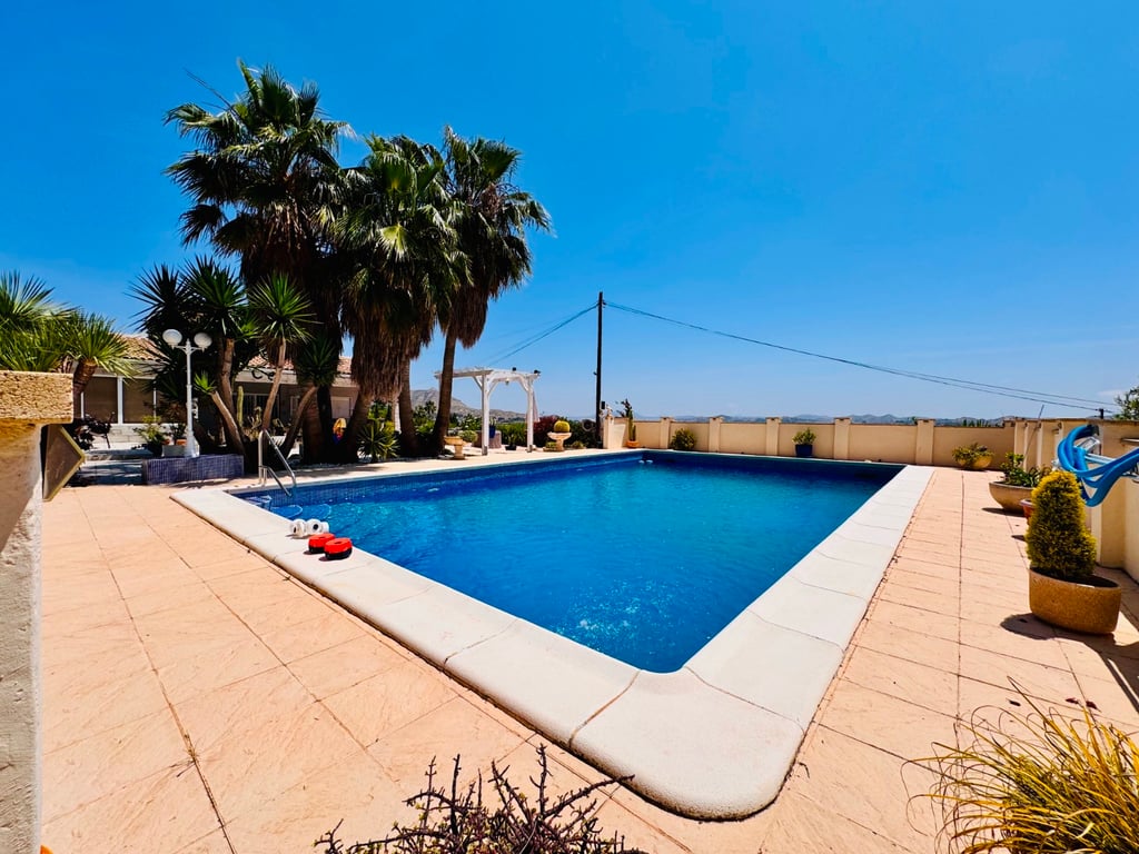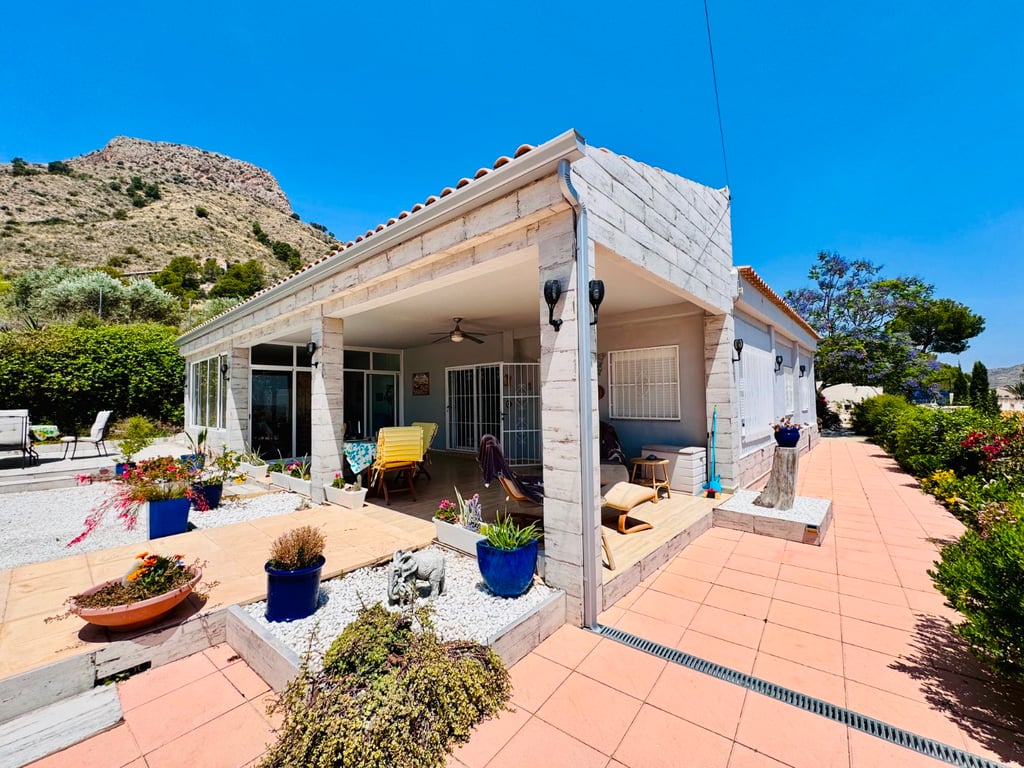 Alicante Sunshine Villas is pleased to present this property, nestled in a fantastic location providing superb views across the wide valley.The plot of 2300m2 approx is completely fenced, and has two accesses, one on each level of the property, both have automatic gates leading from asphalted roads.The main entrance on the upper level leads to a paved area around the house, with parking for 2-4 cars. From this we enter a tiled courtyard garden, with a summer kitchen and built-in barbecue and a s...