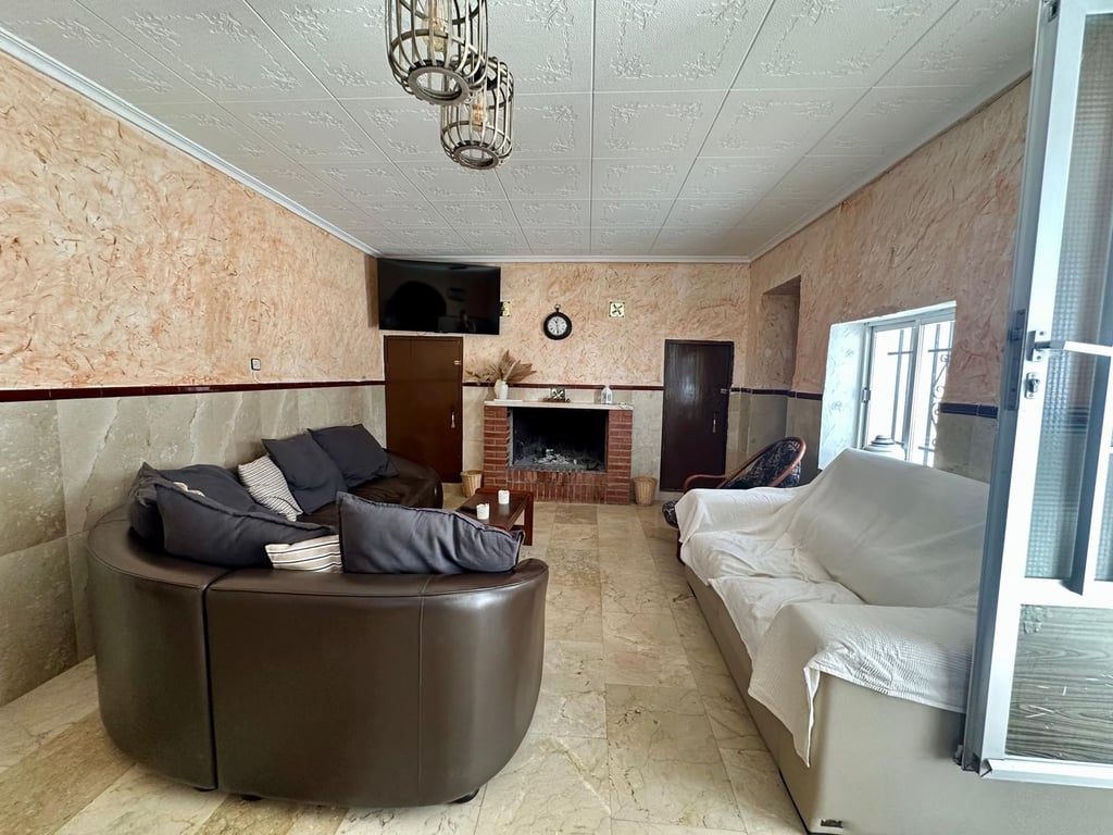 This wonderful villa in Torre del Rico, has approximately 1000 meters built. The main house has 700m2 divided into 2 floors. Inside the house there are 5 bedrooms, 2 bathrooms, living room, kitchen, utility room and larder. The house is very well occupied as it is delivered with furniture and white goods. It also has central heating, 2 fireplaces, pre installation of satellite TV ...On the outside, the house has 600 m2 of plot, fully fenced and with electric entrance gate, this plot has vegetati...