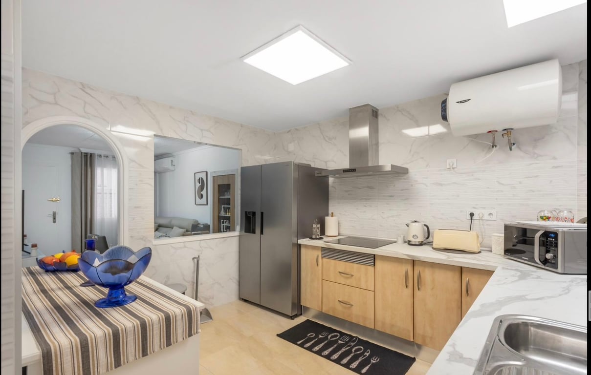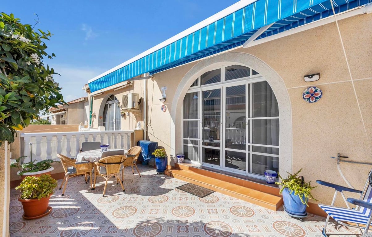 OFFER! South facing townhouse in Torrevieja 2 bedrooms 1 bathroom Terrace Good condition Ready to move in. 52m2 South Facing We present this lovely bungalow located in one of the quietest residential areas of Torrevieja, El Chaparral. The property features 2 bedrooms, 1 full bathroom, and a spacious renovated kitchen with plenty of storage space, perfect for cooking enthusiasts. Enjoy the sun all day long thanks to its excellent south orientation and private sunny terrace, ideal for relaxing, s...