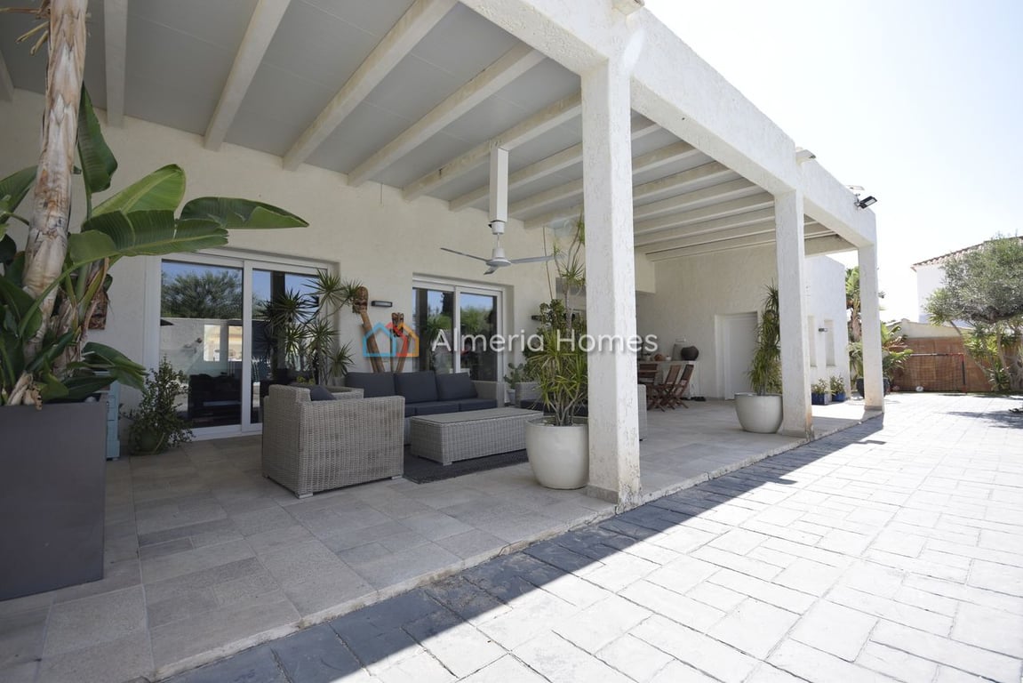 This exceptional four-bedroom villa is located in La Algarrobina just a few minutes from the bustling town of Vera and only a short drive from the coast and Desert Springs Golf Resort. Designed and built to exacting standards for the current owners, no detail was overlooked, with an interior designer involved throughout to ensure a high-end finish that blends modern and rustic styles effortlessly. The villa sits behind electric gates that open onto a printed concrete driveway with a double carp...